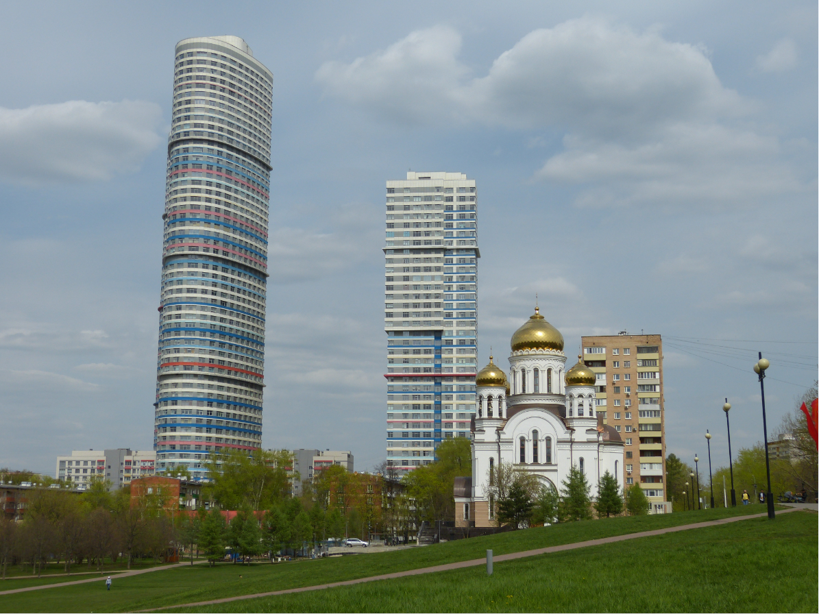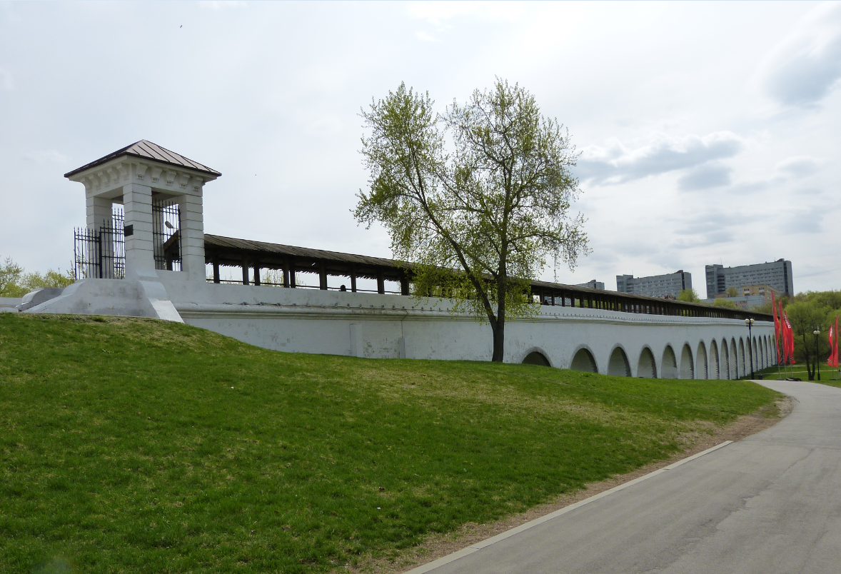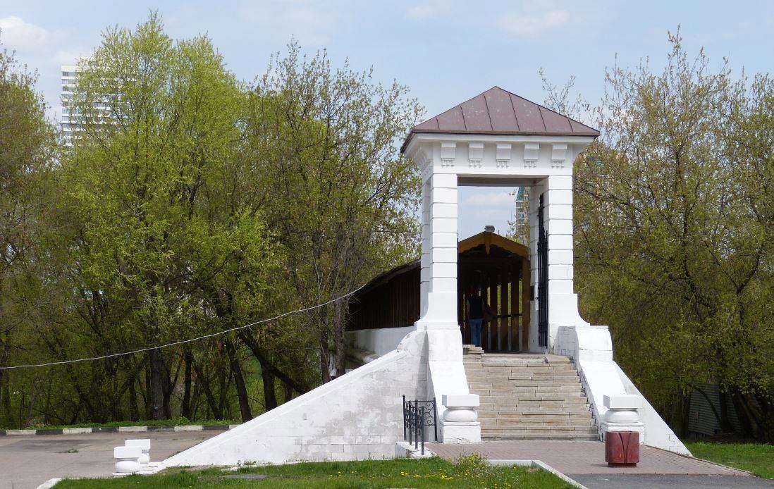 В северном конце парка стоит церковь Святых равноапостольных Мефодия и Кирилла, возле которой "царапает" небеса жилой комплекс "Триколор". Так что вместе с акведуком XVIII века они образуют довольно символичный для Москвы архитектурный ансамбль.
