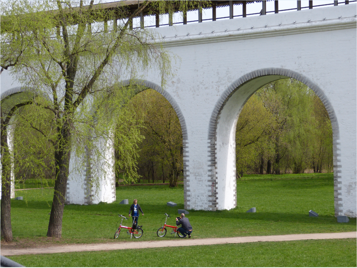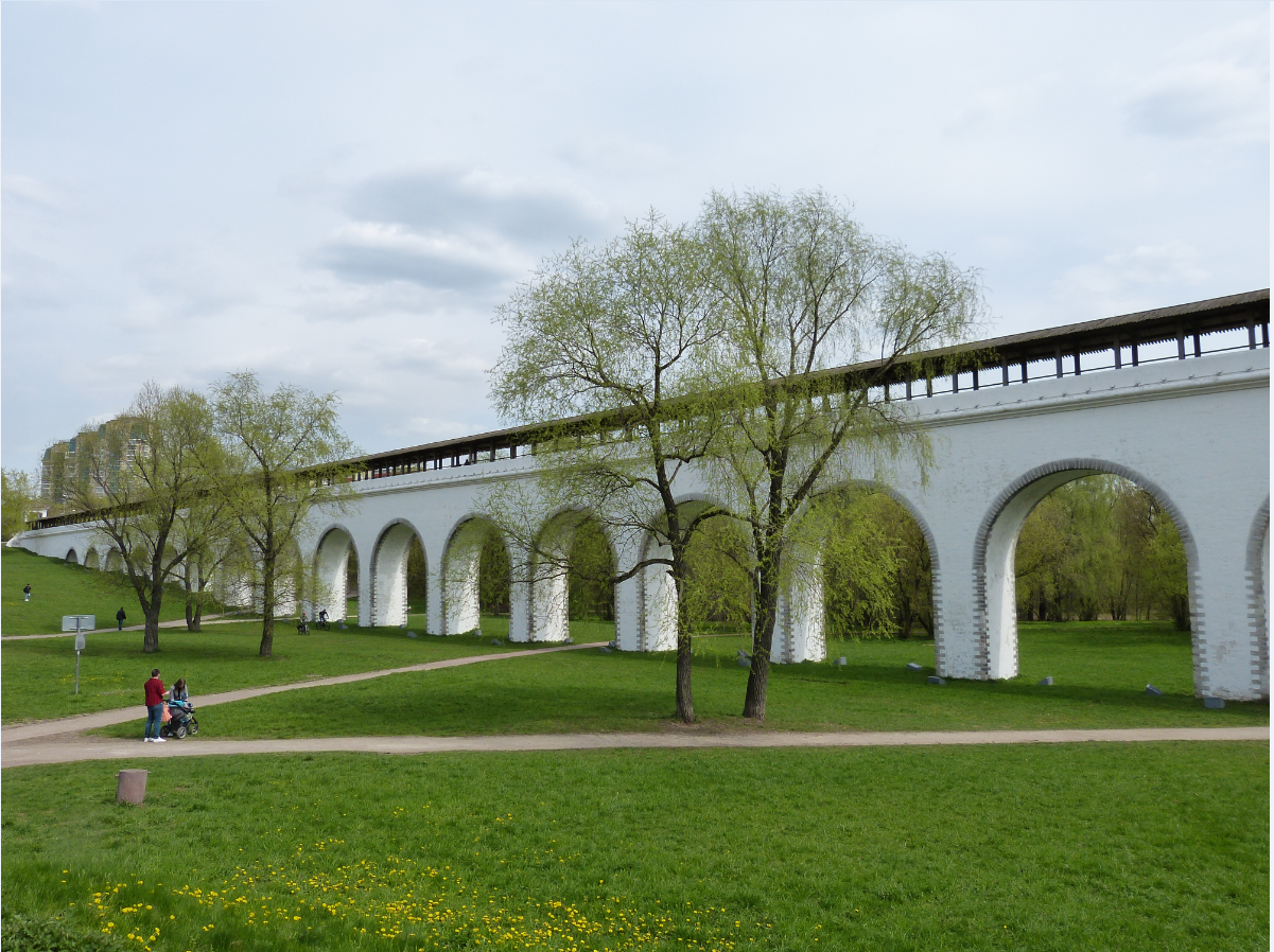 Народу Ростокинский акведук нравится — возле него активно фотографируются.