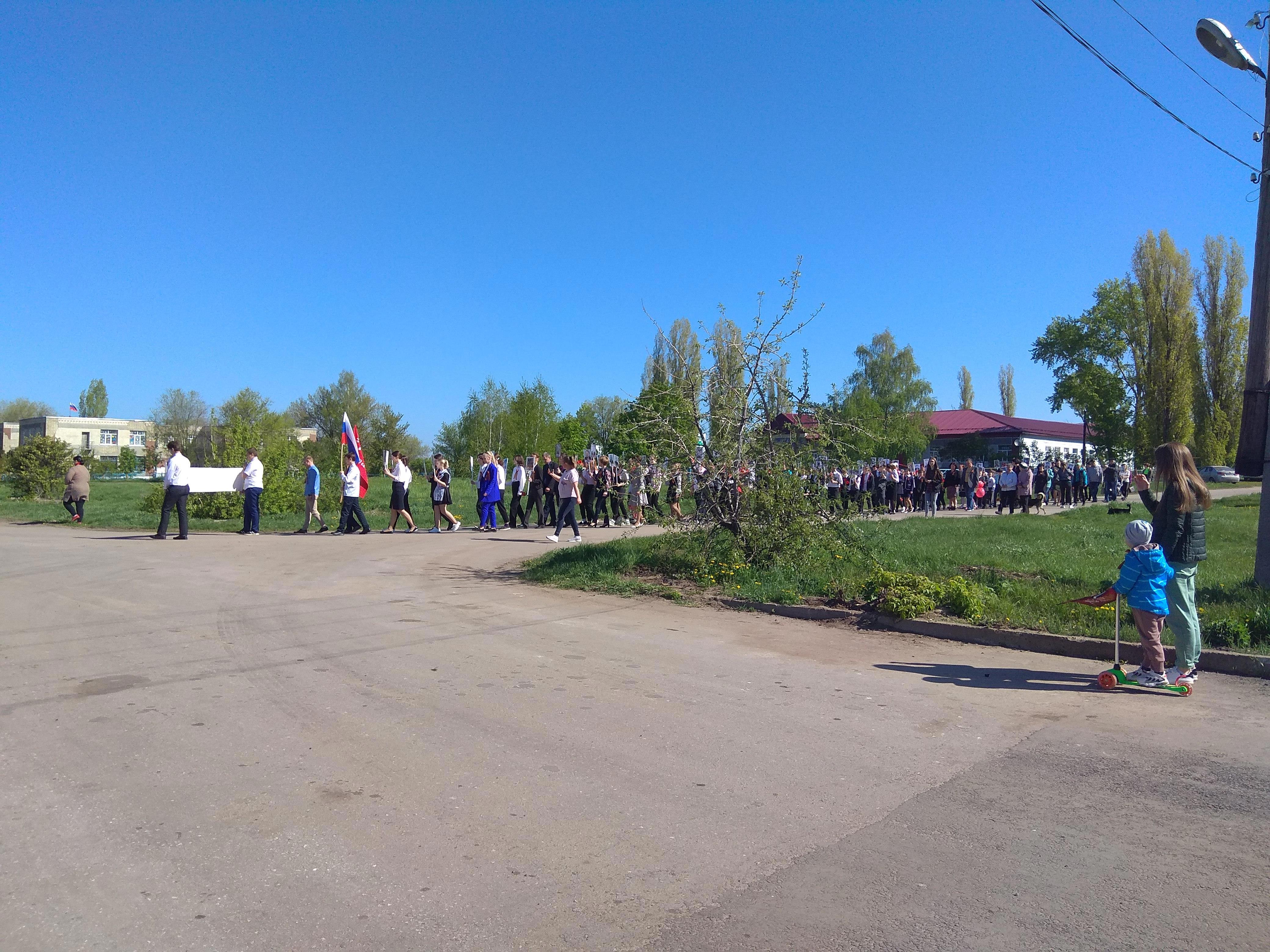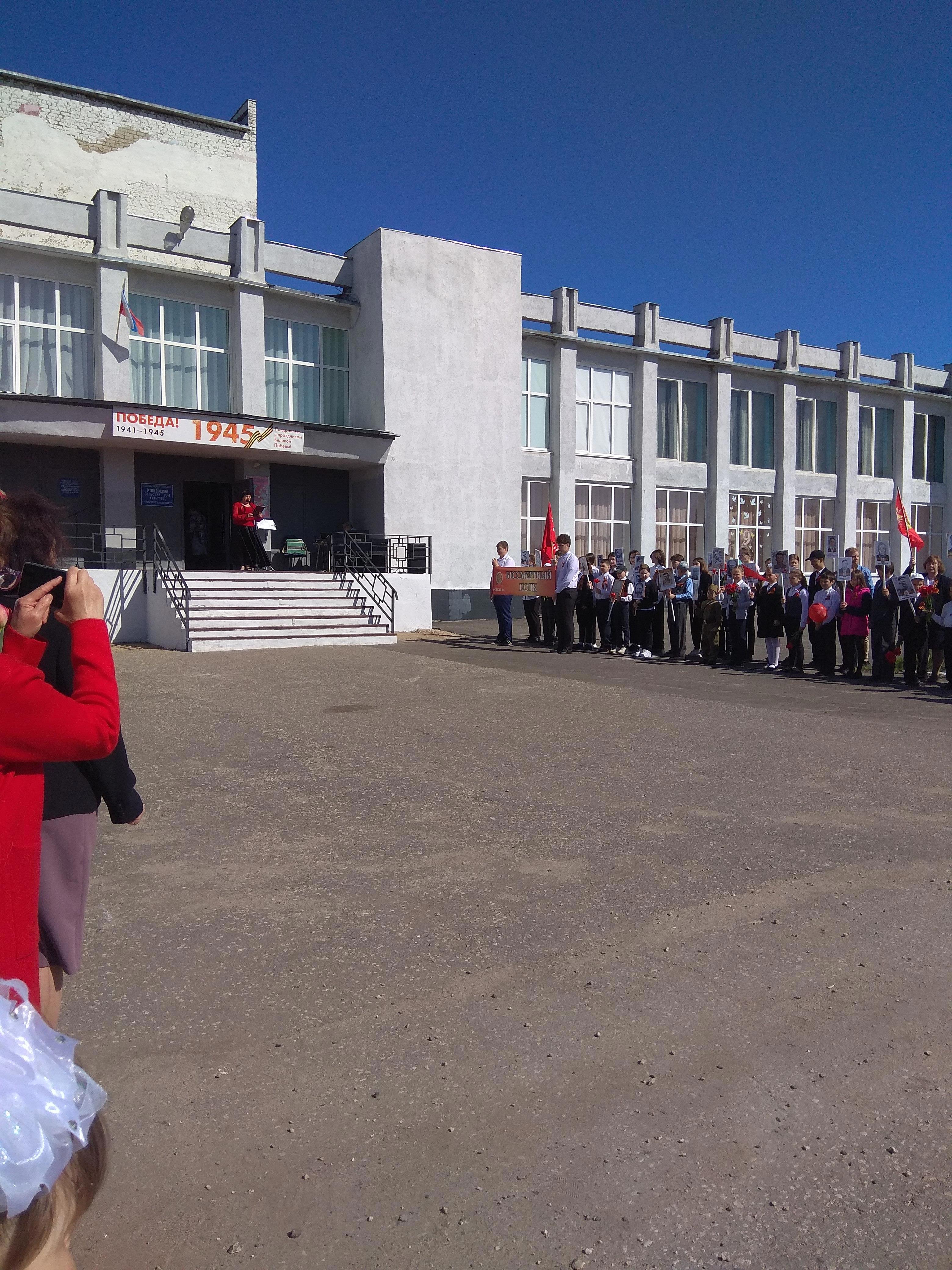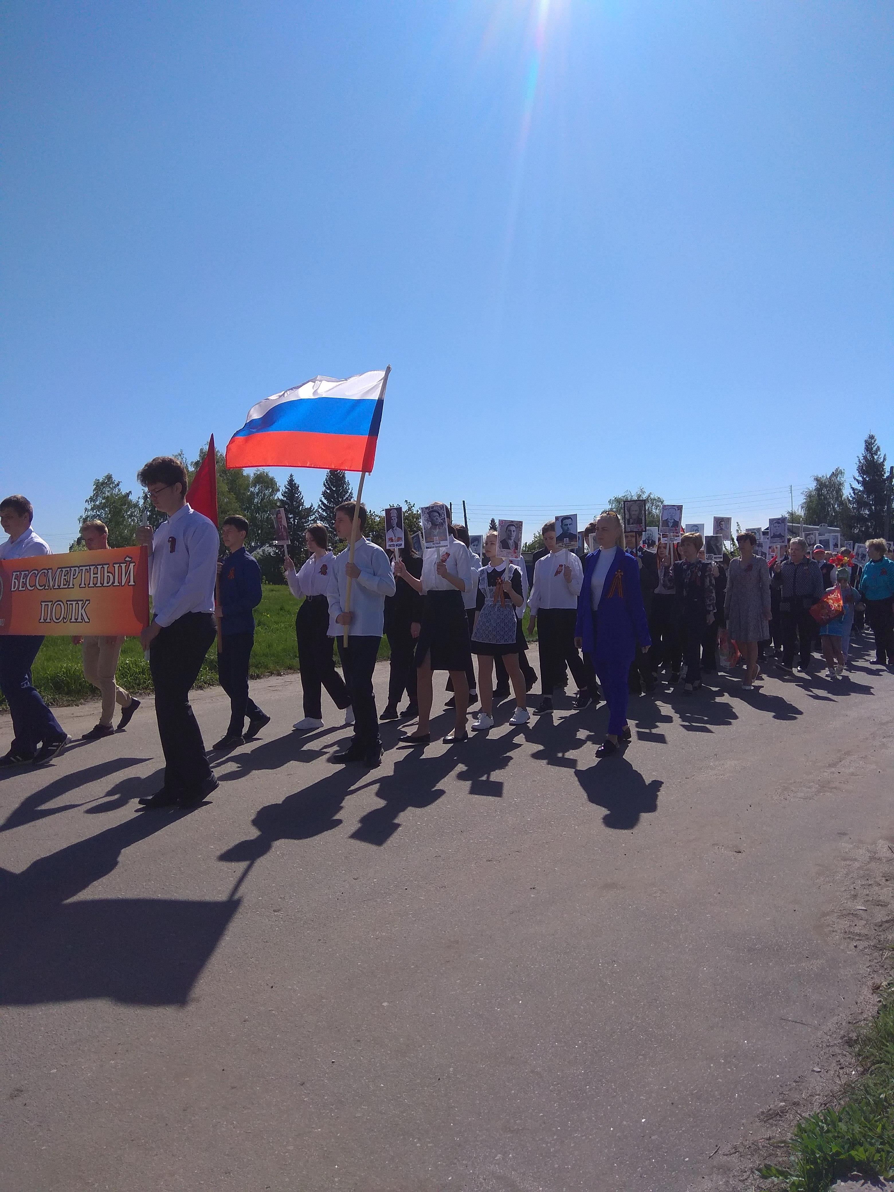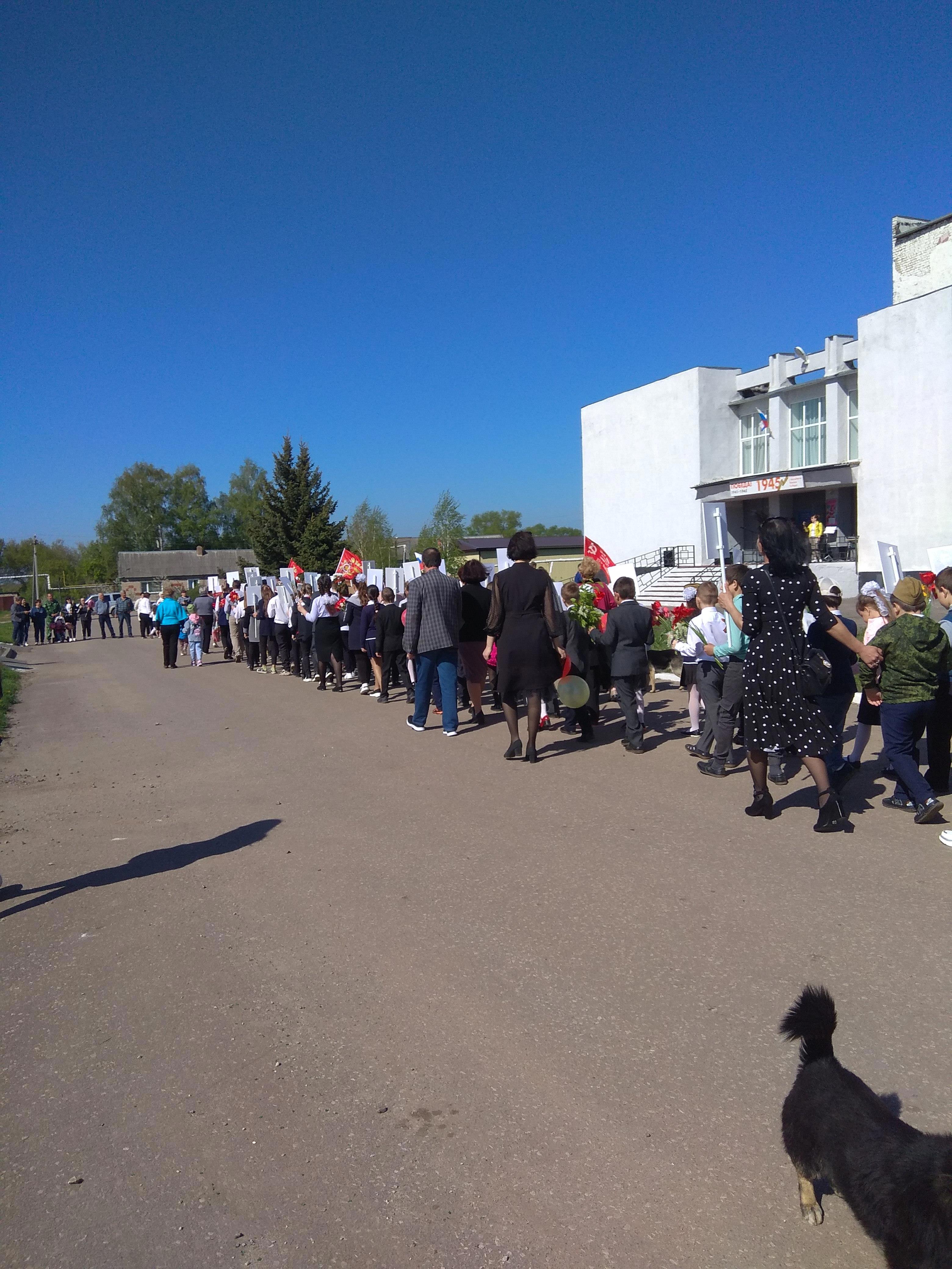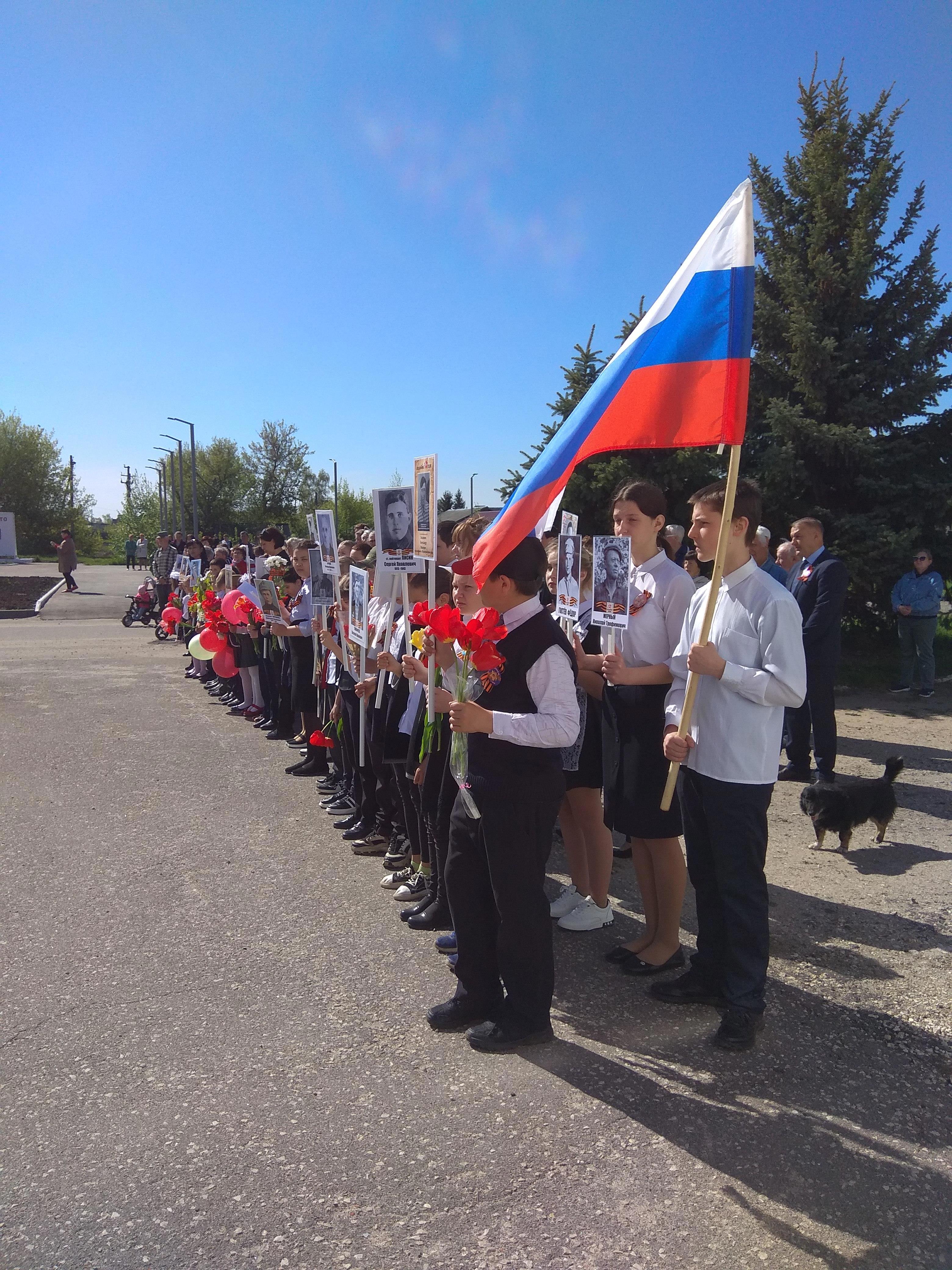 А это наши школьники в Бессмертном полку. Потом к ним присоединились все желающие с портретами своих ветеранов