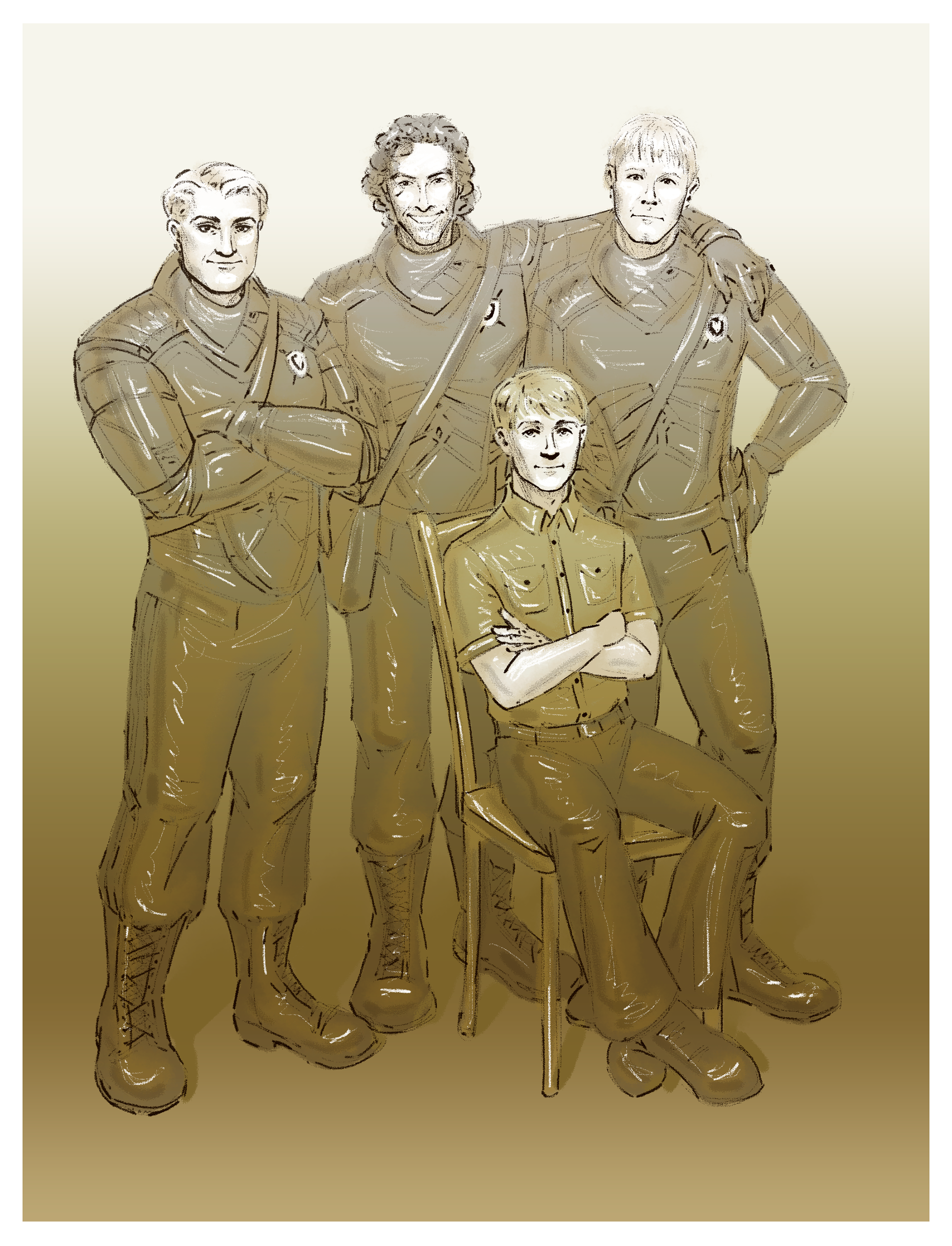 Я прямо вижу эту историю – идея, разумеется, принадлежала Фину, поэтому он самый довольный, а всем остальным было очень влом тащиться с работы прямо в форме, но спорить с Фином, которому в голову пришла гениальная идея, бесполезно, а в фотоателье от их вида несколько офигели, но фотограф сумел взять себя в руки и сделать именно то, что было надо. Я общем, я категорически довольна.