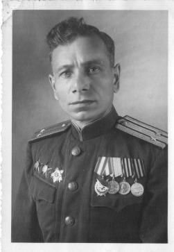 Подполковник, артиллерист, прошел всю войну в составе 29-й тяжелой минометной бригады. Воевал в Крыму, участвовал в освобождении Севастополя, в боях за мыс Херсонес, в штурме Сапун-горы. После освобождения Крыма воевал на 1-м Белорусском фронте, участвовал в штурме Кенигсберга. Победную весну встретил в Восточной Пруссии, куда переехала в конце 40-х его супруга, моя прабабушка, Анна Гавриловна с детьми - Адой и Валерием.
