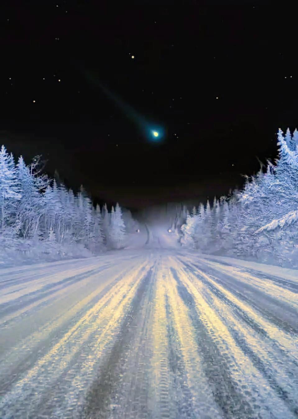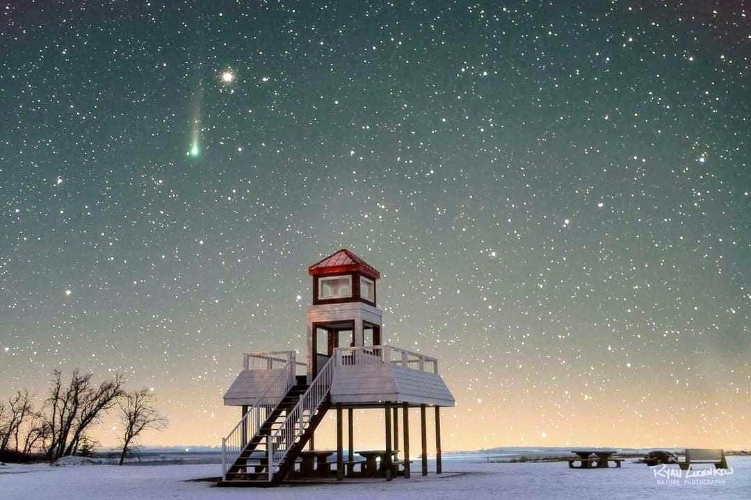 Комета Леонарда зимой в Канаде.