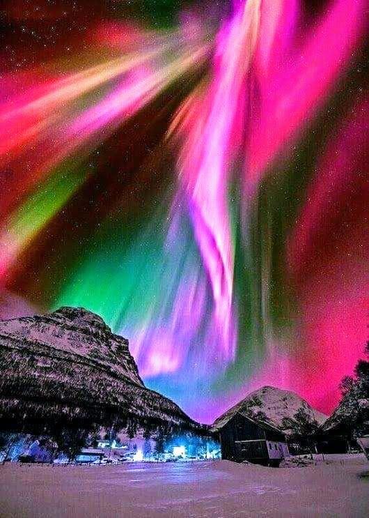 Необычно многоцветное полярное сияние. Китдален. Норвегия.