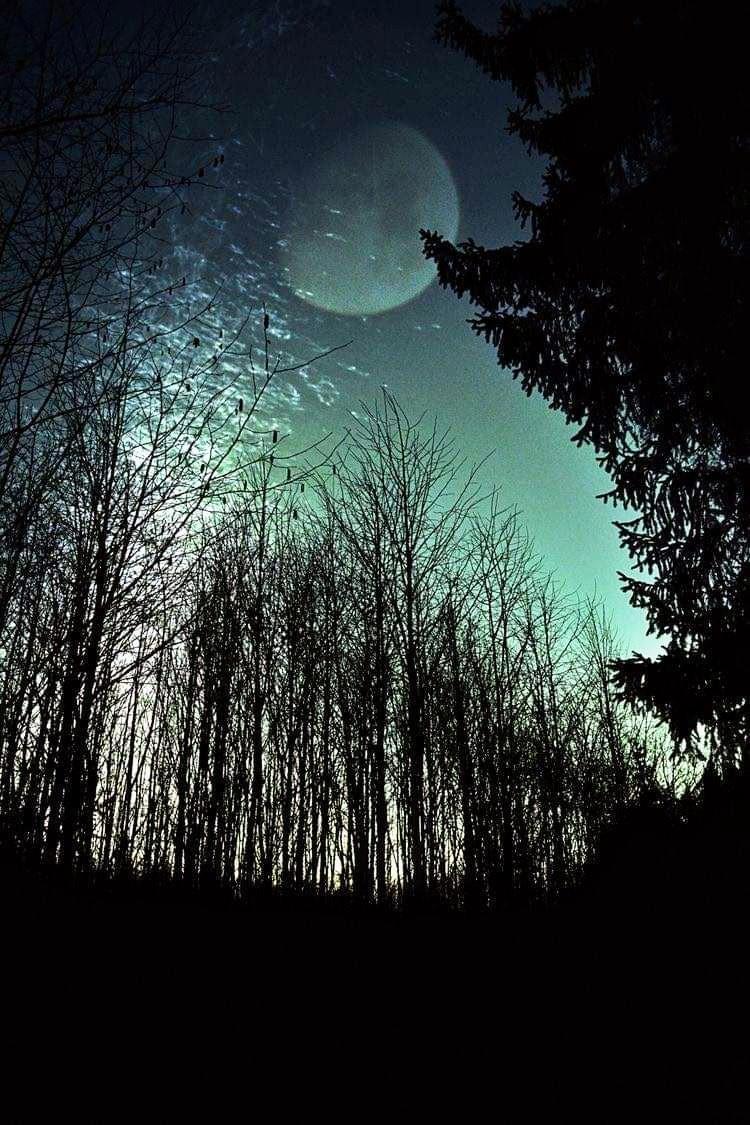 Огромная полная луна в лесу.