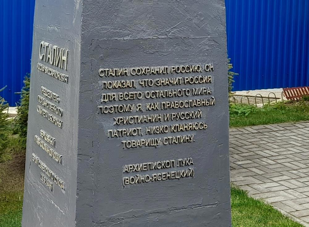 Само по себе необычно - стоит бюст Сталина. И на боках постамента цитаты двух бесспорно уважаемых людей, которые на мой взгляд куда весомее чем все сванидзы с млечиными, новодворскими