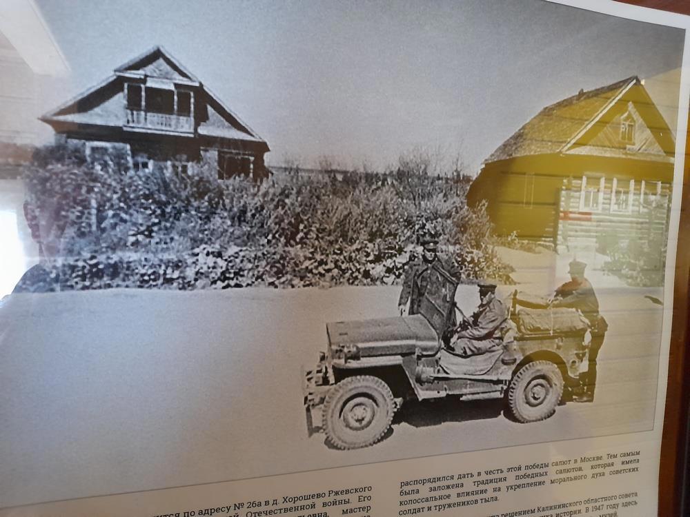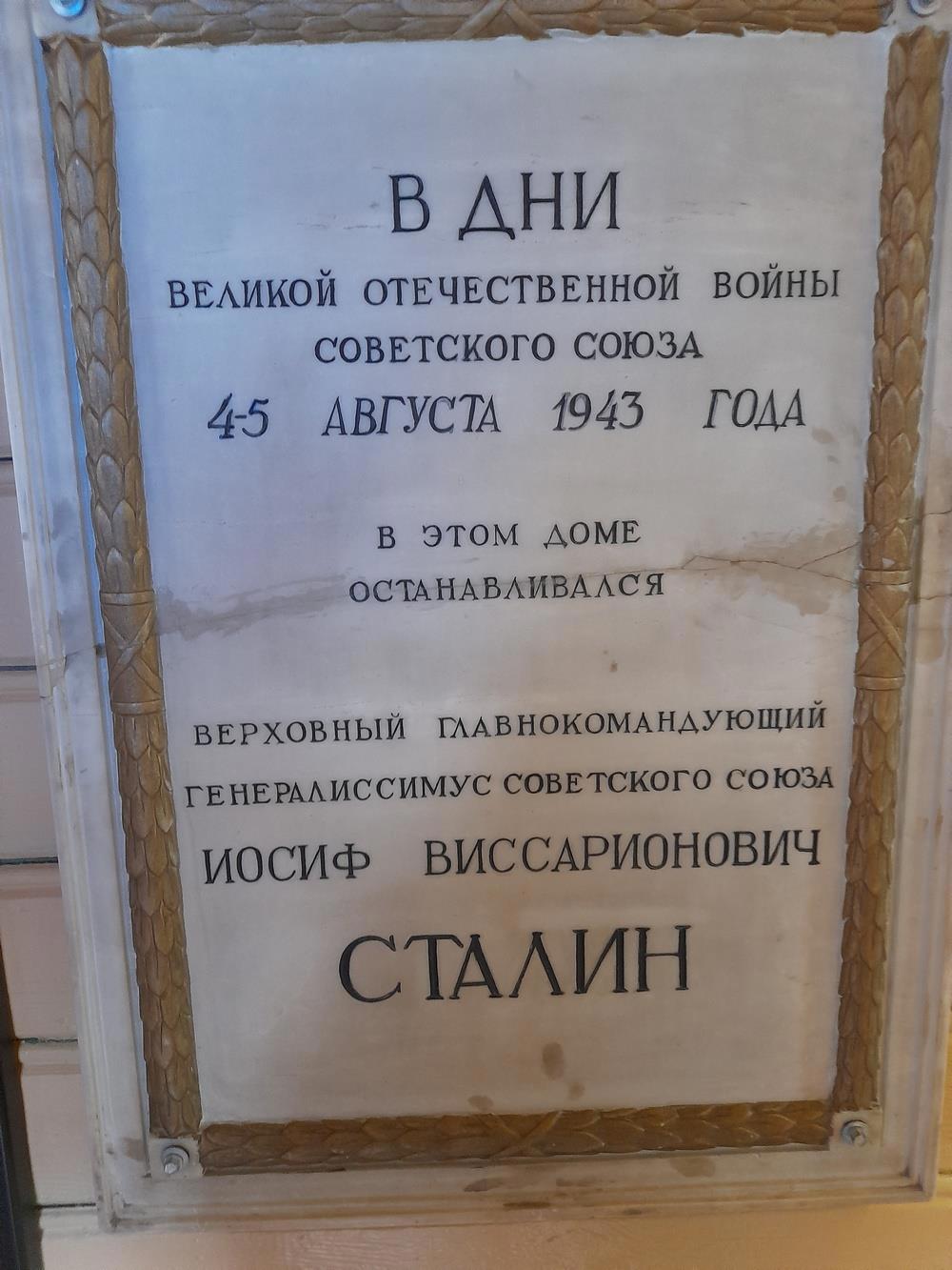 Автор: Николай БергНе вполне правильное название. Просто дом в деревне Хорошево под Ржевом, где Сталин был во время своей поездки на фронт - работал там два дня. (Сейчас это уже город Ржев)