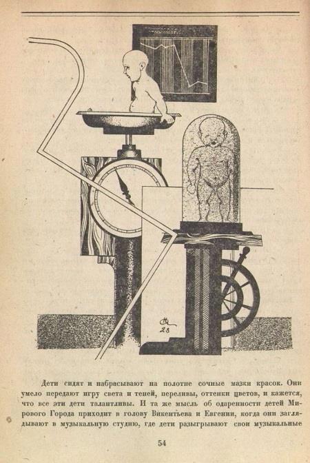Блуждавший по Герценовской улице тринадцатилетний пионер, сын типографского наборщика, рыжий Женя Волхонский, направлявшийся в редакцию пионерского журнала, для того чтобы внести от одного звена подписные деньги, увидев девушек, втянул многозначительно в себя воздух, оглядел их с ног до головы и осторожно последовал за чужестранками…».