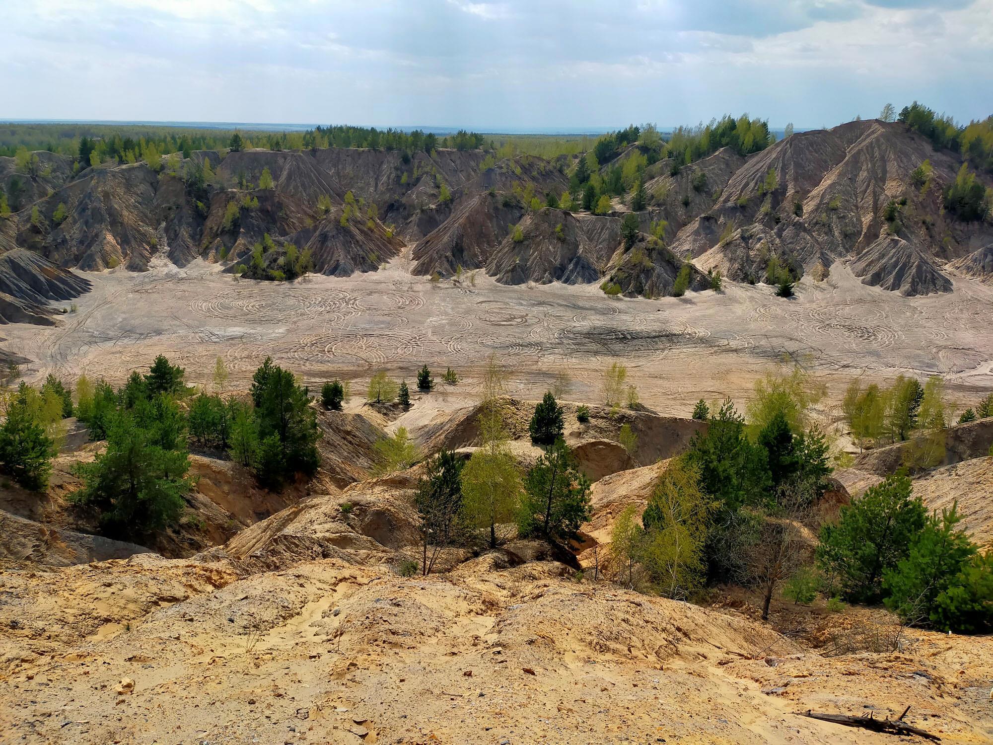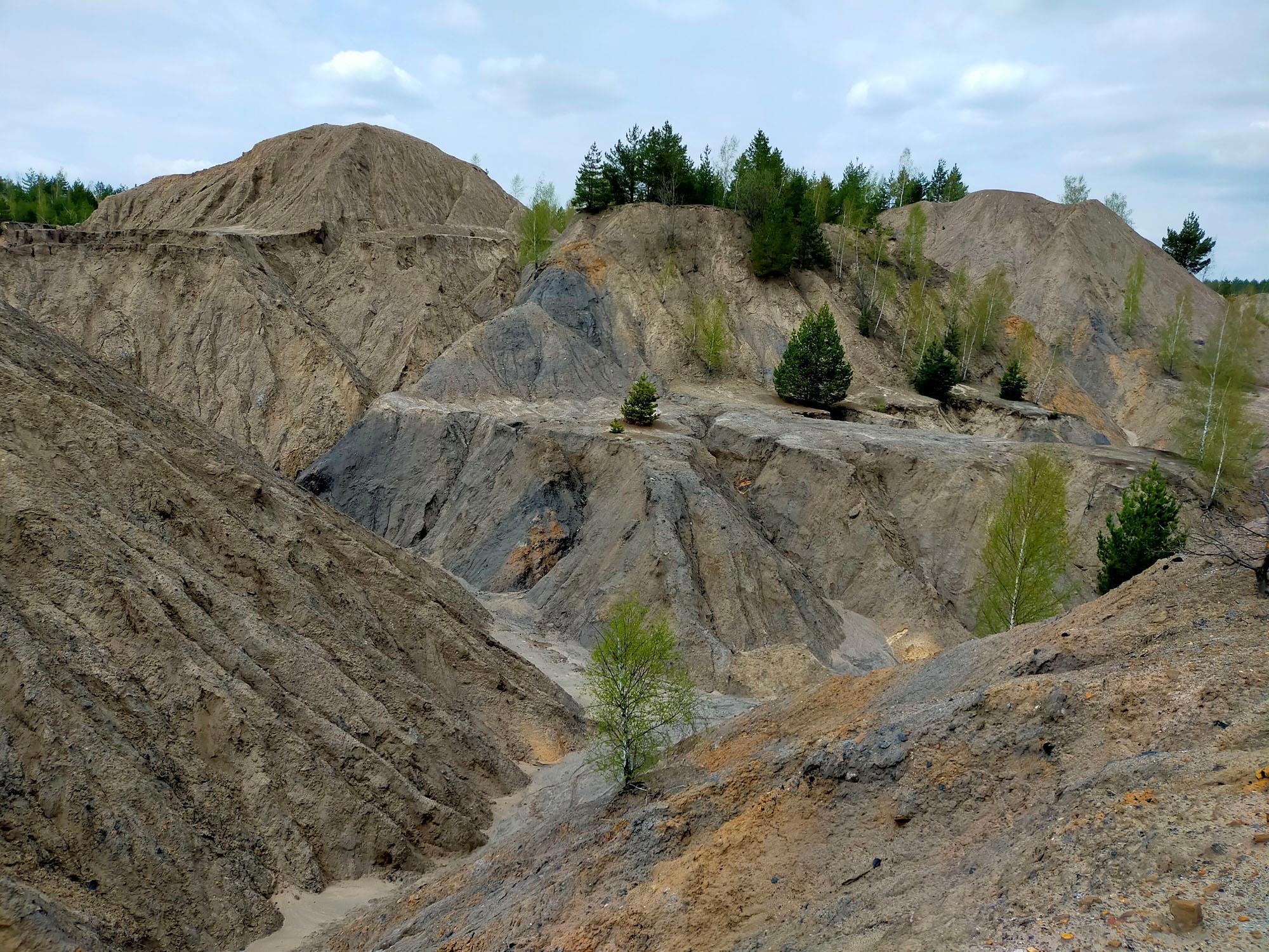 Вторая часть путешествия – карьеры и терриконы. Дождевые и талые воды прорезали здесь целые ущелья.