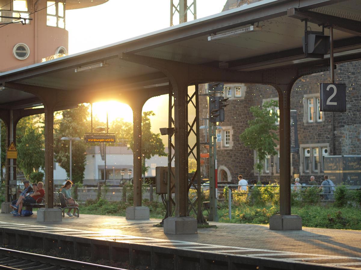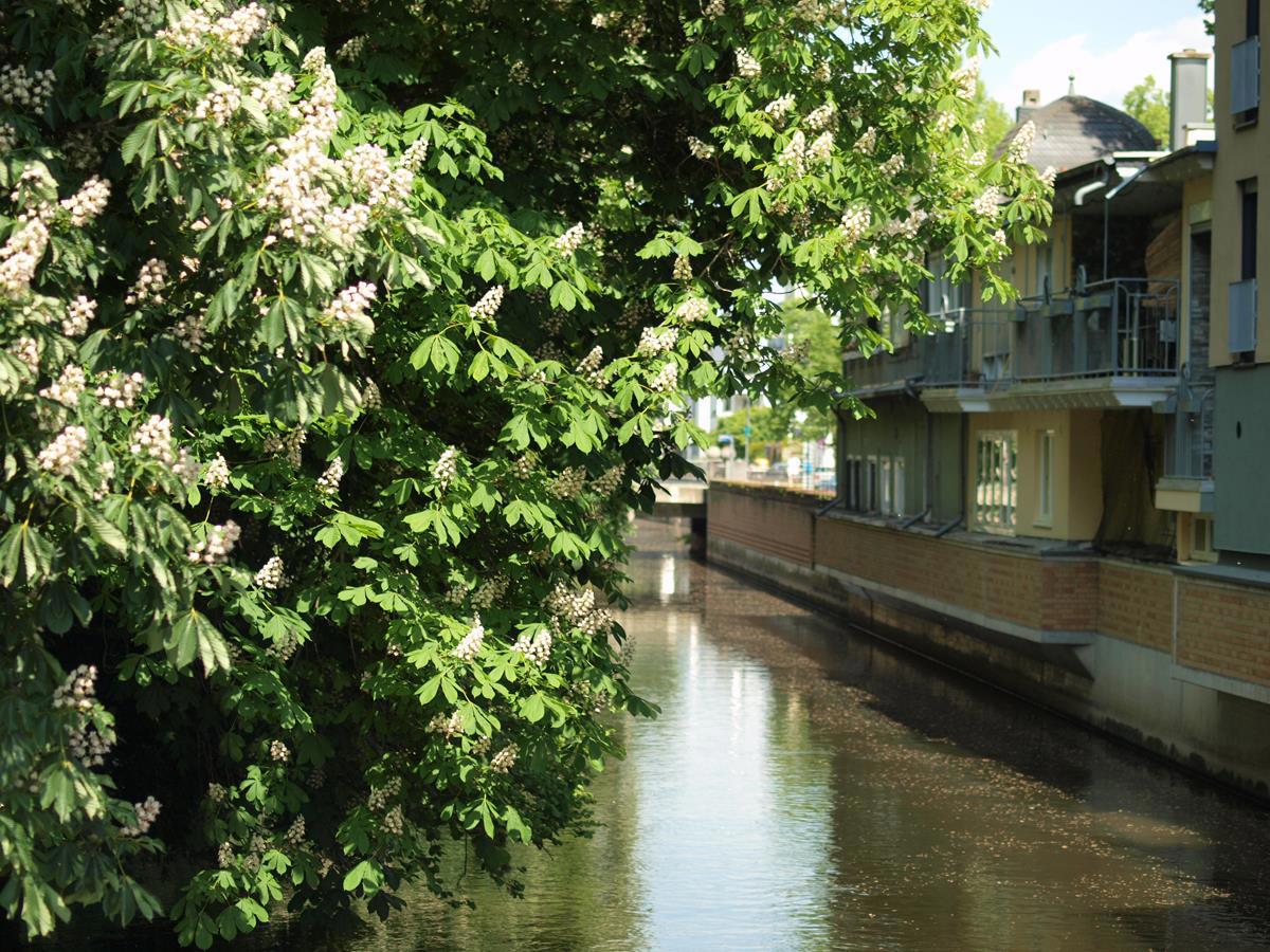 Собеседование было в 16, так что я поехала где-то к полудню, чтобы погулять (потому что дневной билет стоит 22 евро, как-то жалко просто смотаться на собеседование и обратно))). Окрестности там волшебные! Доехала до соседнего Бад-Мюнстера, купила капучино, миндальную слоёную булочку и пошла к реке.