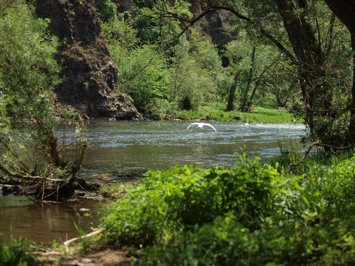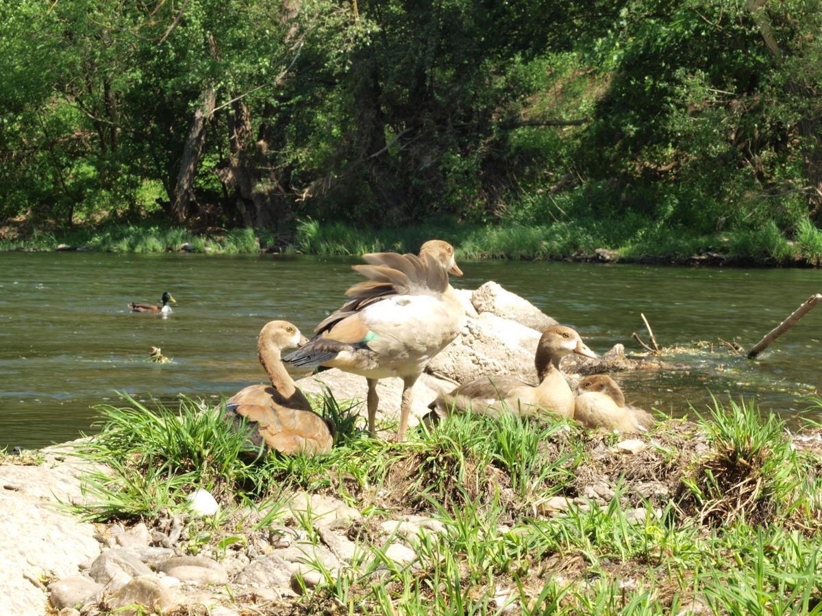 Река особенная — Nahe, Наэ. Я сначала придумала имя реке в «Речной сонате», а потом вспомнила, что такая уже есть)) Она очень быстрая, противоположный берег скалистый. Всё несётся, шумит, лебеди плавают и утки. Порывы ветра сдувают с деревьев какой-то мусор и пыльцу прошлых недель, так что я весь день чихала.