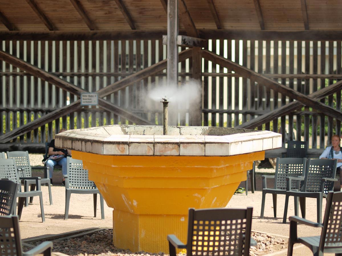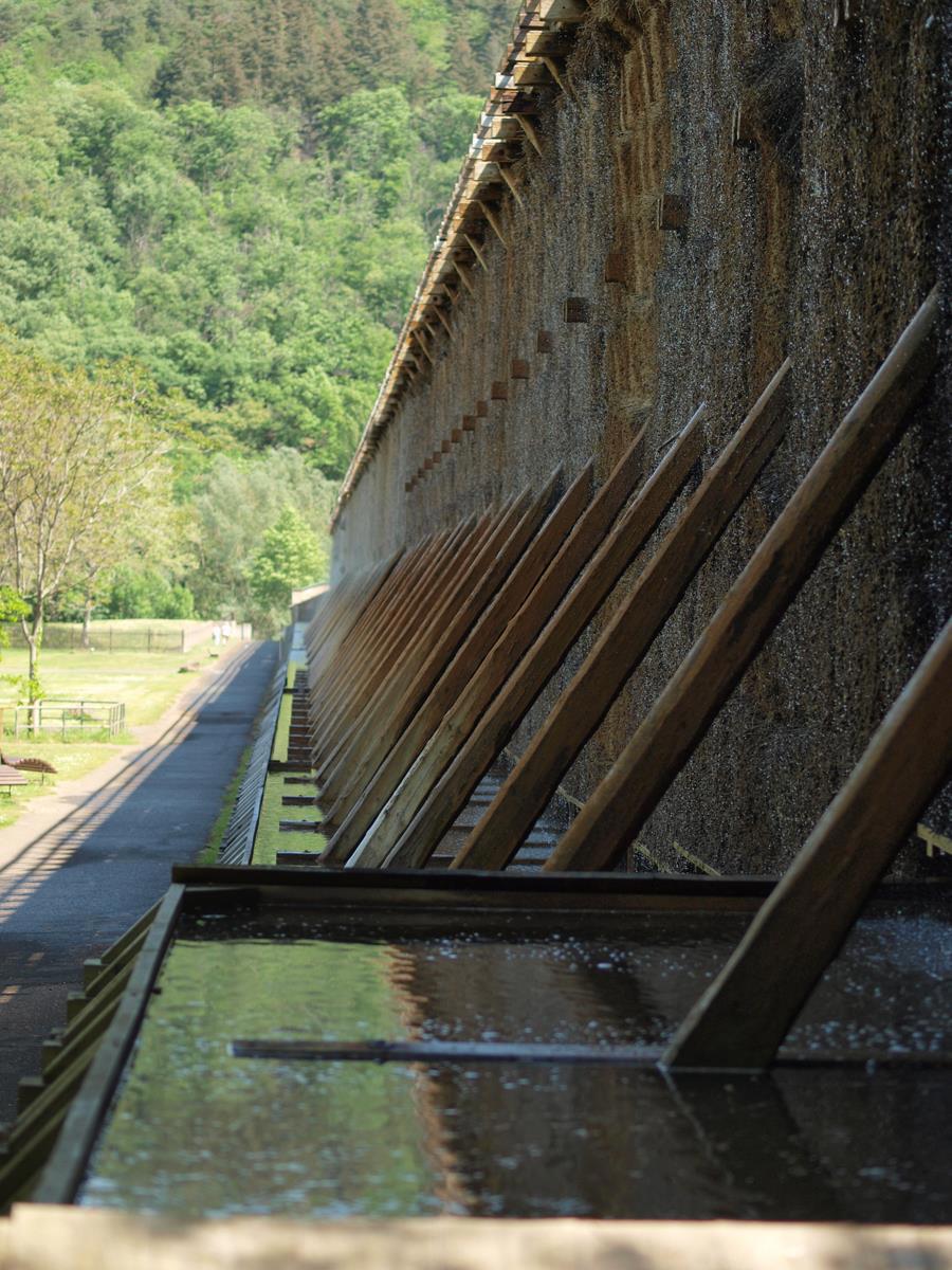 Просто вода течёт снизу вверх, а сама стена в застывших потёках — в воде много минералов. Увлажняет воздух и охлаждает, от неё прямо холодом веет. А это просто для красоты)