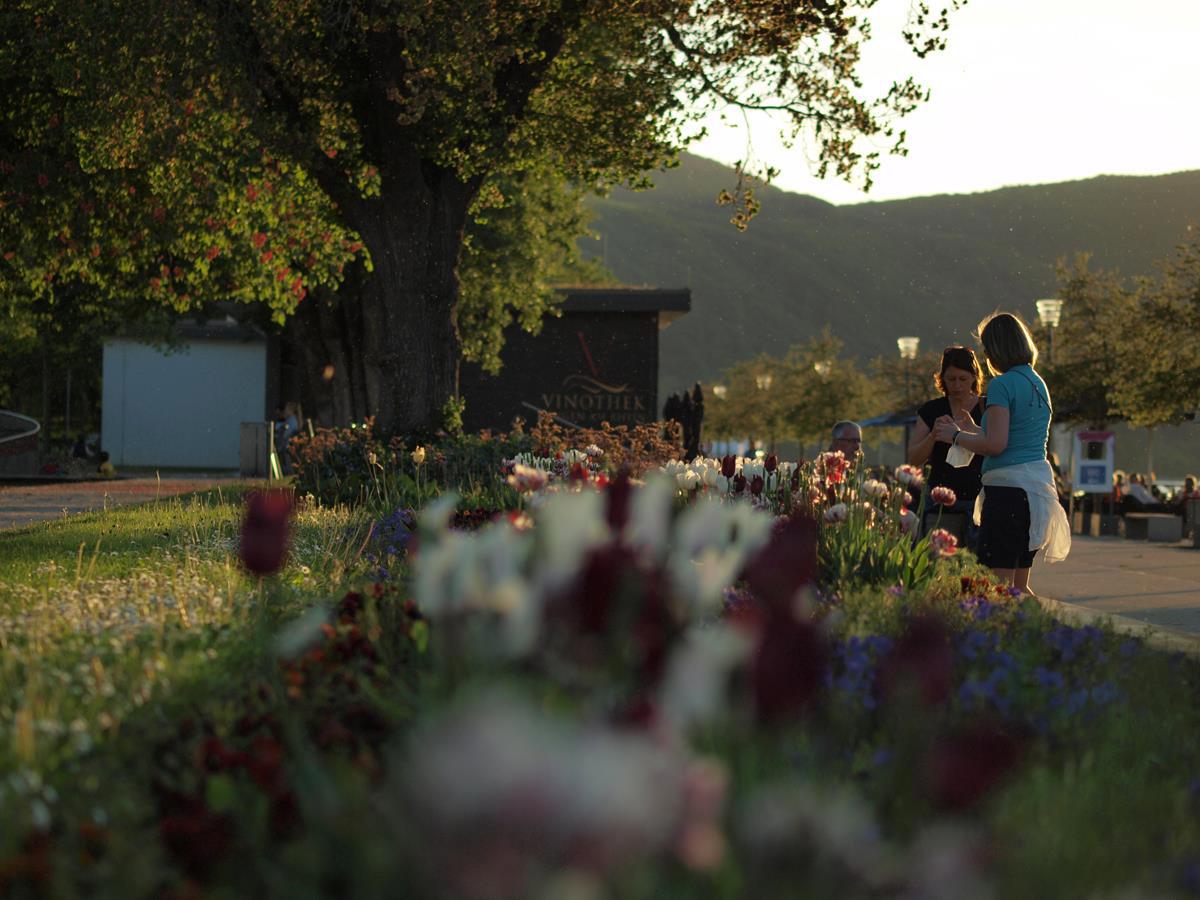 Виноградники и памятник на противоположном берегу. Осенью я туда поднималась по канатной дороге с историческими кабинками)