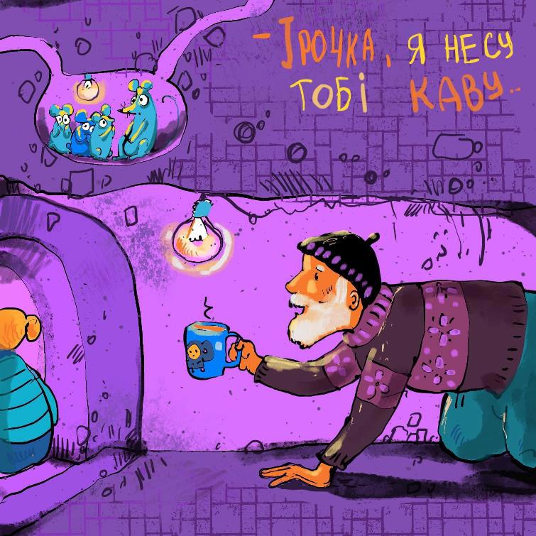"Подвальные хроники" – это небольшая серия рисунков обо мне, моем муже и наших котах с собаками, так называемые "мои семейные хроники войны".