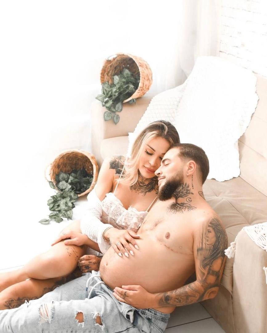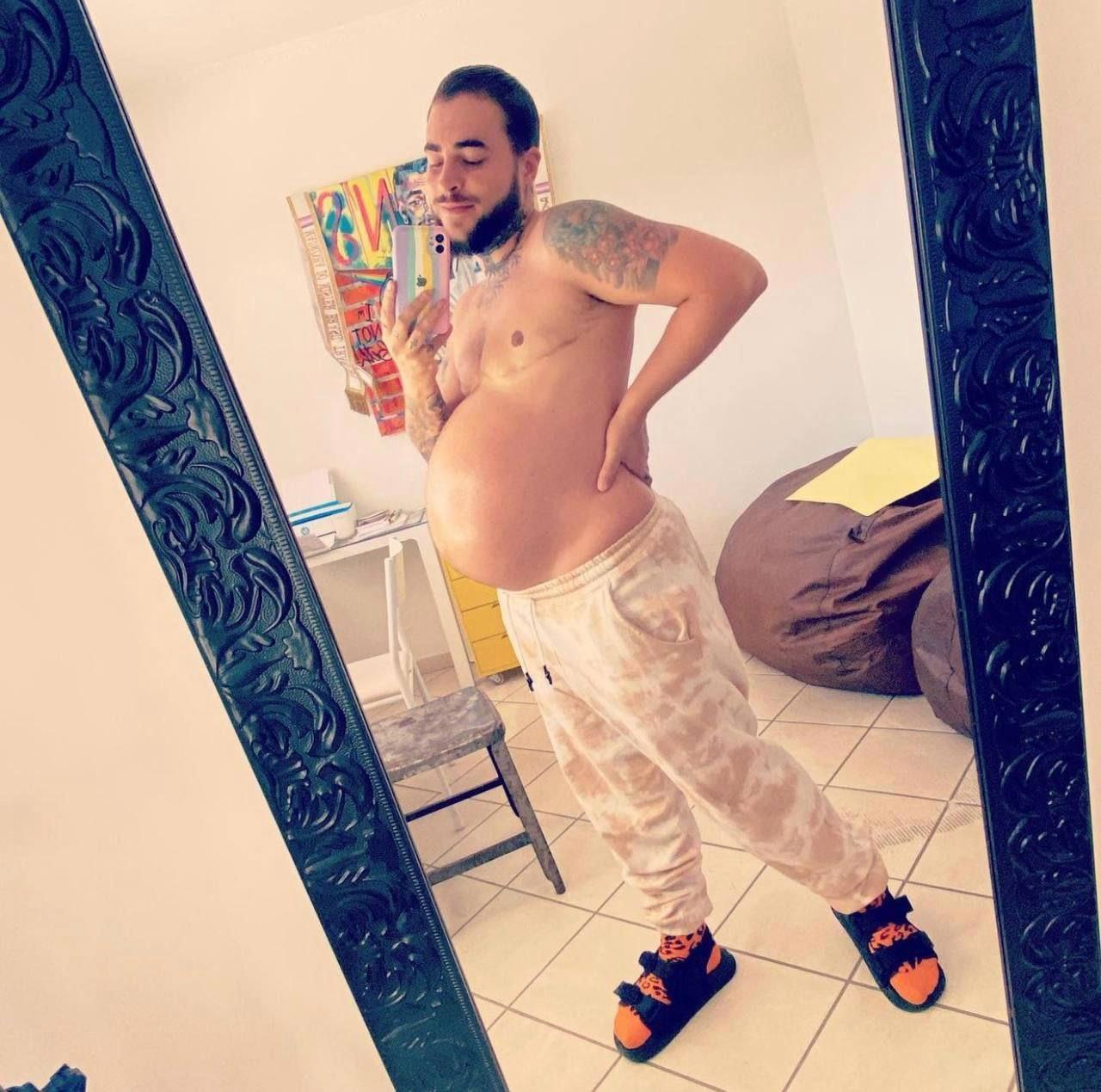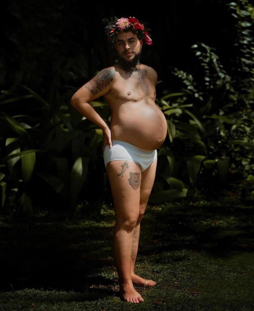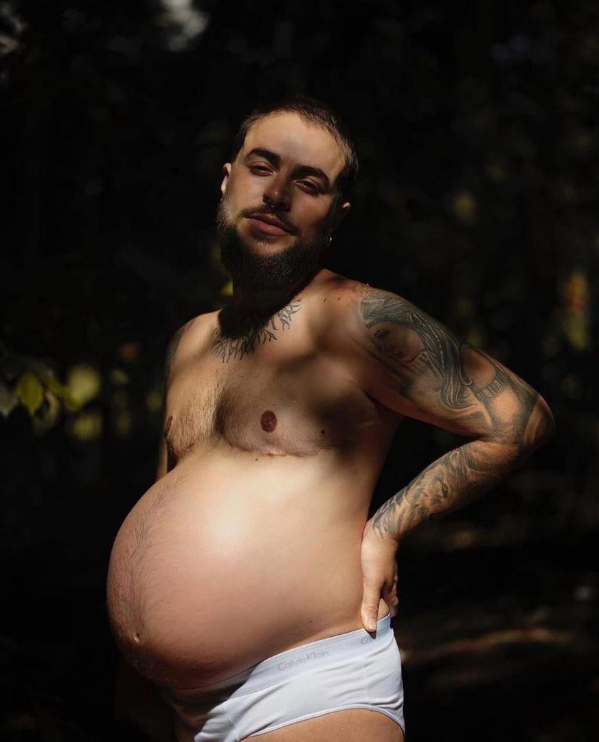 На фотографиях беременный трансгендер. То есть это женщина, которая переделала себя в мужчину, при этом, видимо, сохранила себе матку и путем прокалывания сделала себе искусственное оплодотворение. Рожать. видимо, собирается кесаревым сечением.