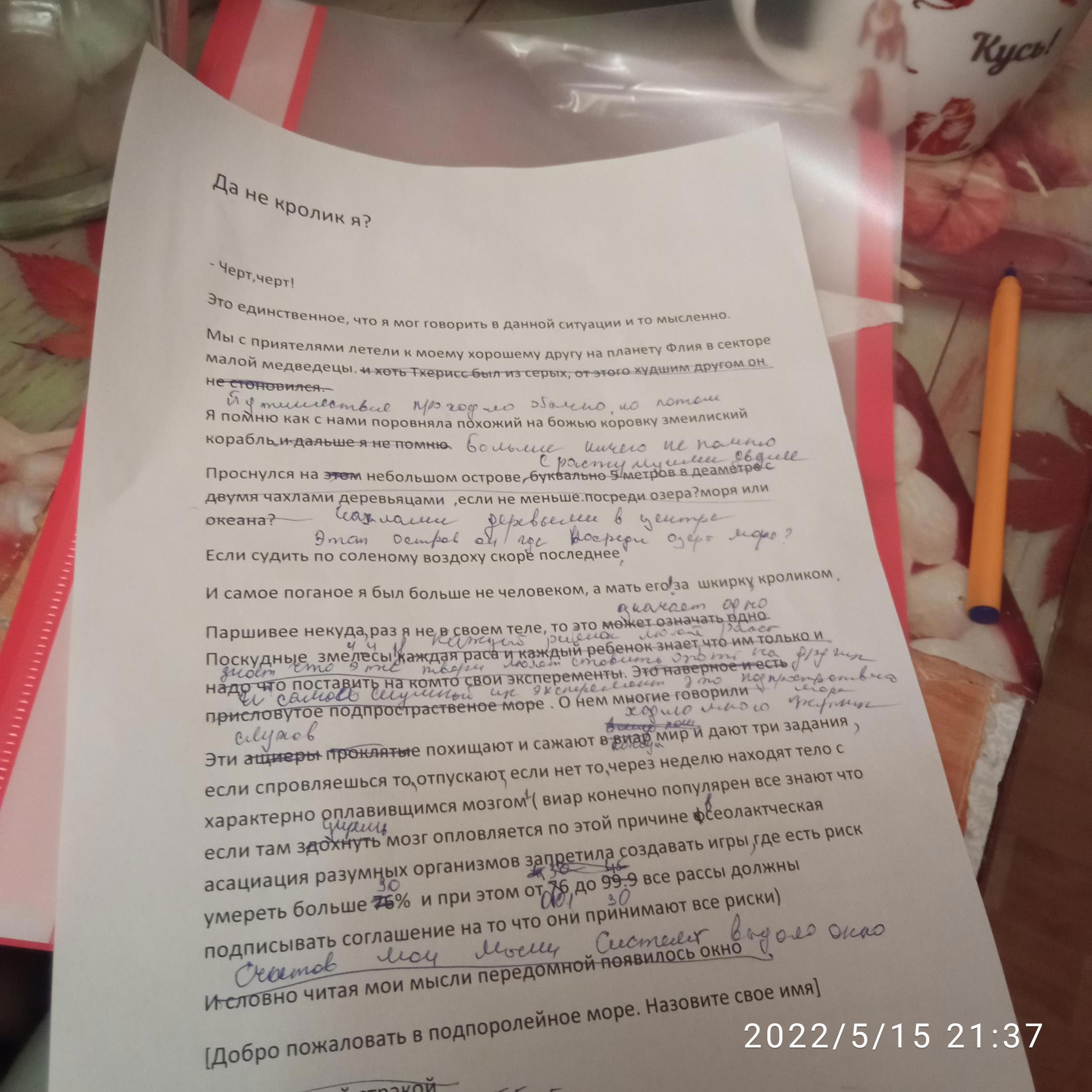 Автор: Капитан Сиарта СоловейСела я редактировать напрягаю мозг и тут понимаю, что распечатала не то. Не весь текст и вообще черновик черновика. Нет слов.