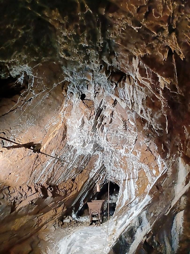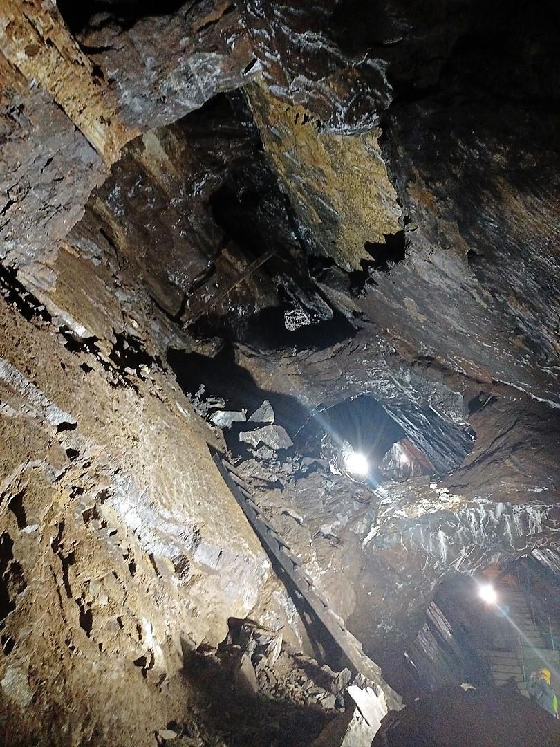 Шахта выработана и закрыта. 60 км тоннелей, 3 яросов - двухкилометровая гора изрыта как головка сыра. Верхние ярусы закрыты, там старые разработки, выдобленные еще в ручную. Внизу в последние годы использовали динамит, поэтому "большие" тоннели. Случился прикол - по плану экскурсии выход в лесу и возвращение по лесной дороге. Но когда мы вышли, лил дождь и пришлось обратно карабкаться по всем лесенкам. Темперетура в шахте круглогодично 7 градусов, летом, при повышенной влажности, кажется очень холодно. На входе поток ветра весьма ощутим, особенно снаружи - прямо таки холодом обдает за много метров