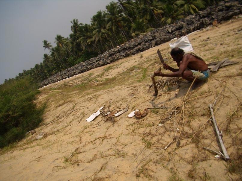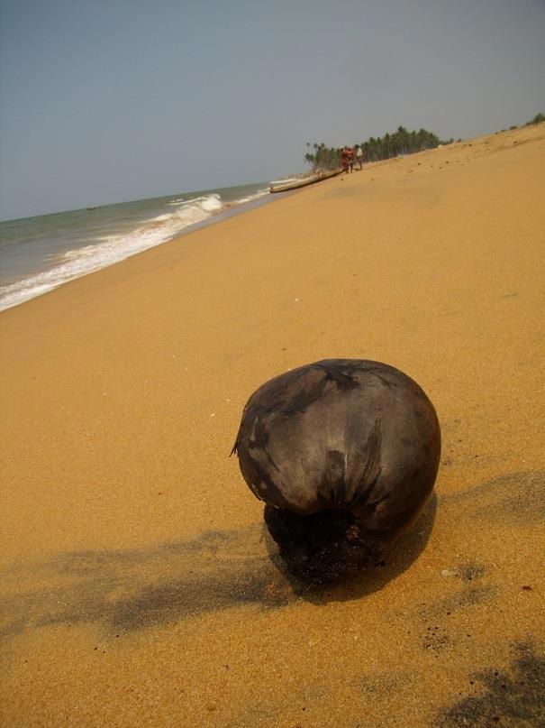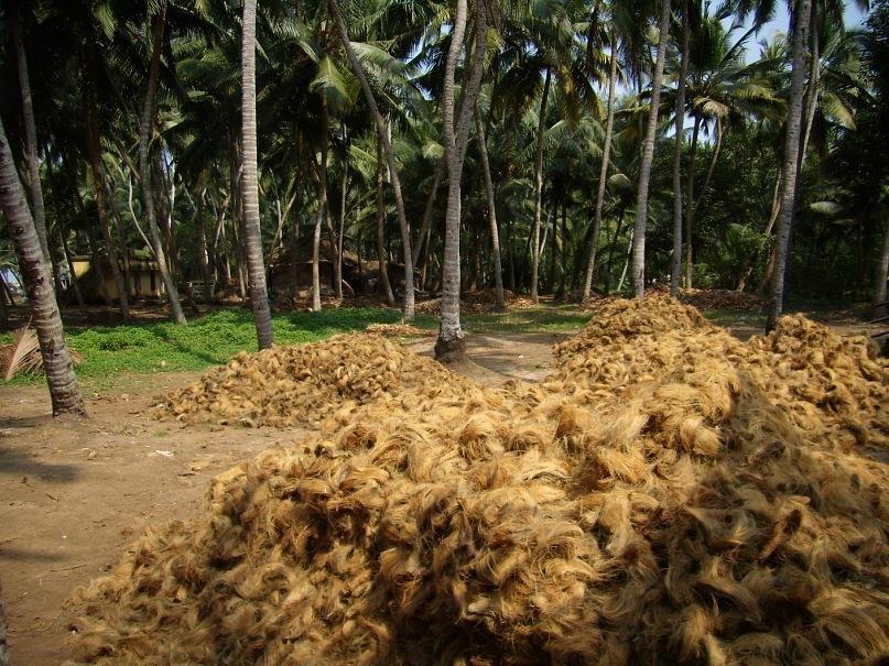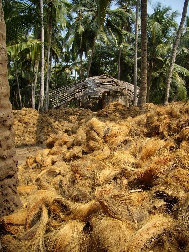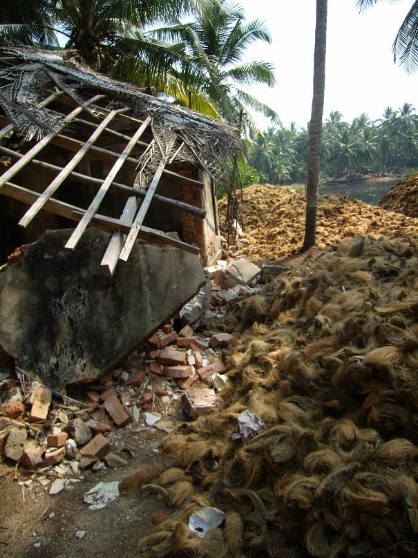 Быстро пройдя через рыбацкую деревушку, оказался в пальмовом лесу. Джунглями это было сложно назвать, потому, что у меня джунгли ассоциируются с лианами, а там такого и в помине не было. Зато была заброшенная фабрика по переработке кокосового волокна - койра. Огромные, мягкие кучи с коричневыми растительными волосами лежали среди пальм, кирпичных руин и ржавых механизмов.