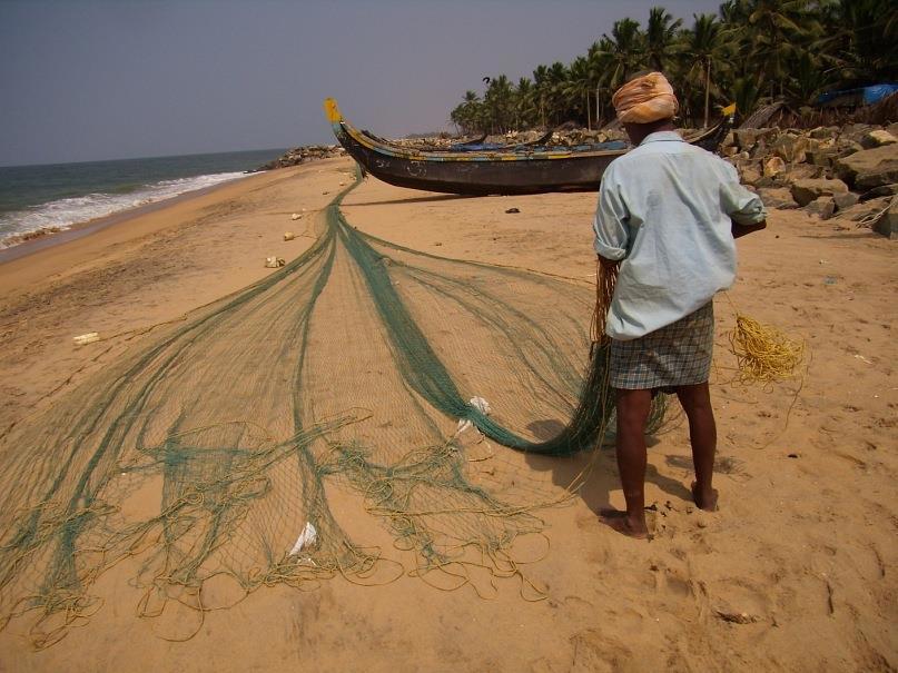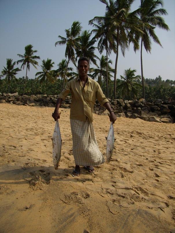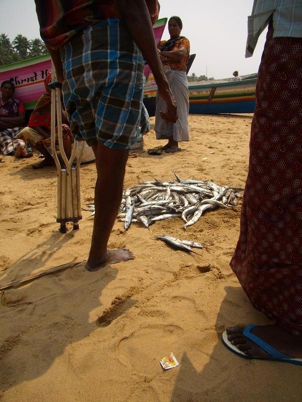 Рядом, среди пальм располагалась рыбацкая деревушка. Там тоже было полно рыбаков. Мужчины что-то очень шумно обсуждали, кажется, сегодня улов был невелик. Обратите внимание, у одного рыбака нет одной ноги. Хотел подобраться поближе и сфотографировать более выразительно, но постеснялся.