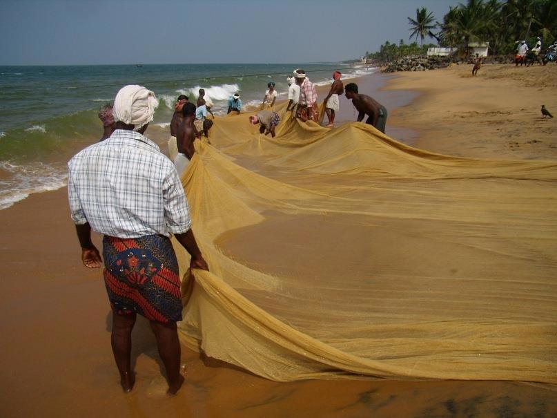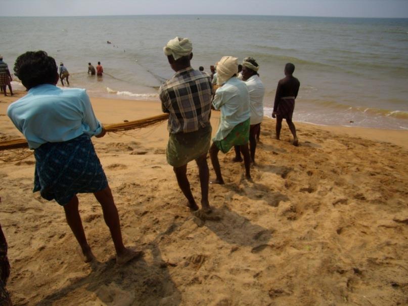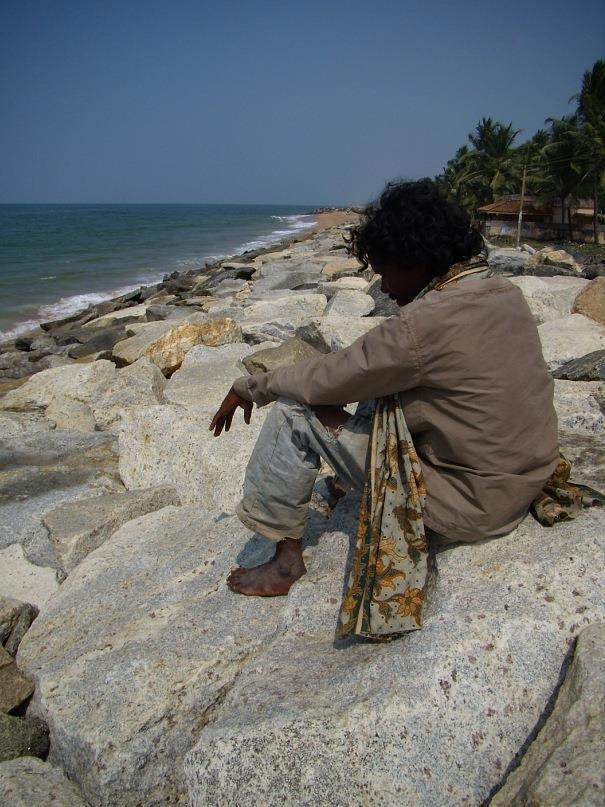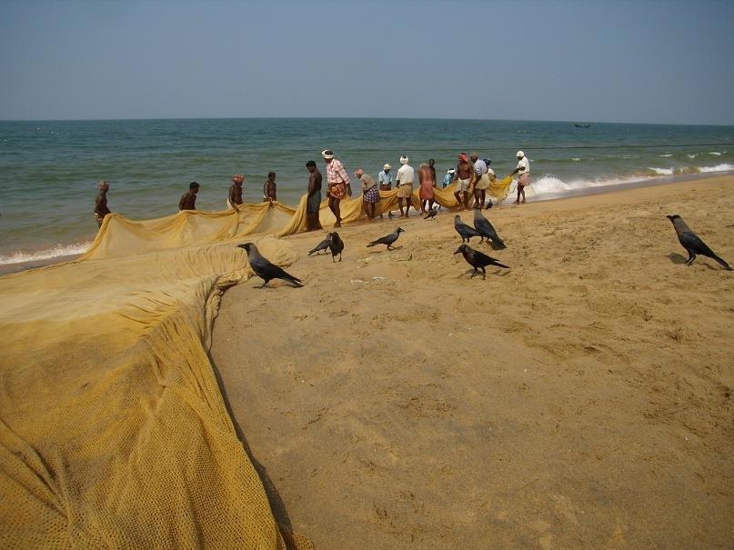 Скучные отели очень быстро закончились, а вместе с ними ухоженность, гламур и идиллические, открыточные пейзажи. Перебравшись через отшлифованные морем базальтовые валуны, оказался на диком побережье. Индийский океан шумел своим размеренным прибоем, пахло морской водой и водорослями. Две немки вальяжно загорали топлесс и с удовольствием смотрели, как работают мужчины — довольно большая группа рыбаков, тянущая сети из моря. Вороны гуляли неподалеку и тоже поглядывали туда же, на рыбаков, в надежде, что им что-нибудь перепадет.
