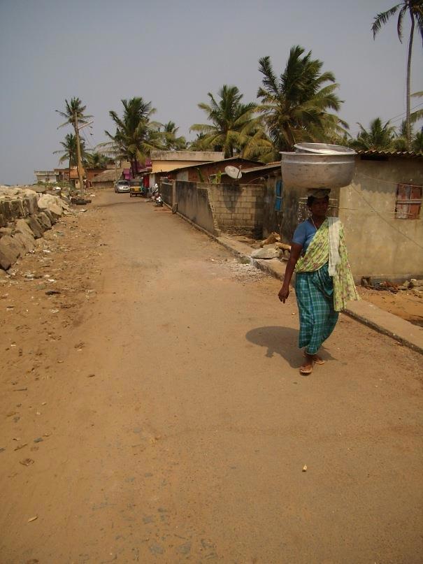 Рядом была следующая деревня, а за нею следующая. Обветшалые хижины в тени пальм. Поселение отделялось каменной стеной от моря, видимо, таким образом, люди защищались от шторма. Я чувствовал, что ворвался, влез в размеренную жизнь местного люда, потревожил их. Они смотрели на меня, как на чудо. Видимо, туристы сюда забираются редко и белый человек с фотоаппаратом и рюкзачком для них - экзотика. Взрослые улыбались и кивали мне головой, а дети буквально набрасывались гурьбой, протягивали свои руки и кричали: "Money, give me money".
