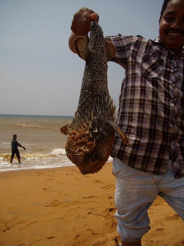 Парень стал рыться в сети, вытащил оттуда рыбину, довольно странного вида, явно какую-то тропическую тварь, и гордо показал. Экзотическое несчастное создание обречённо висело и грустно смотрело на этот жестокий мир. Я уважительно поднял большой палец вверх, после чего пацан размахнулся морским обитателем со всей силы и швырнул её в желтые волны океана.
