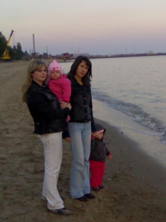 Мариуполь, 2009 год, октябрь. Вид на порт. Мы с Олькой и детьми у моря