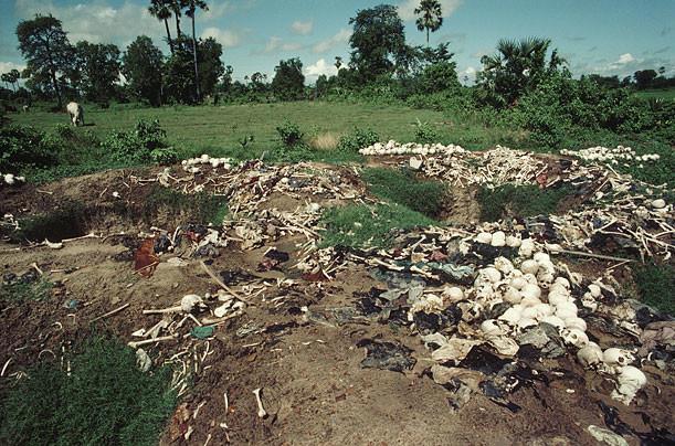 Людей подгоняли к краю траншеи, наносили лопатой или мотыгой удар в затылок, и сталкивали вниз. Когда ликвидации подлежало слишком много людей, их собирали в группы по несколько десятков человек, опутывали стальной проволокой, пропускали ток от генератора, установленного на бульдозере, а затем сталкивали потерявших сознание людей в яму и засыпали землёй”. Даже своих же раненых солдат Пол Пот приказывал убивать, чтобы не тратить деньги на лекарства.