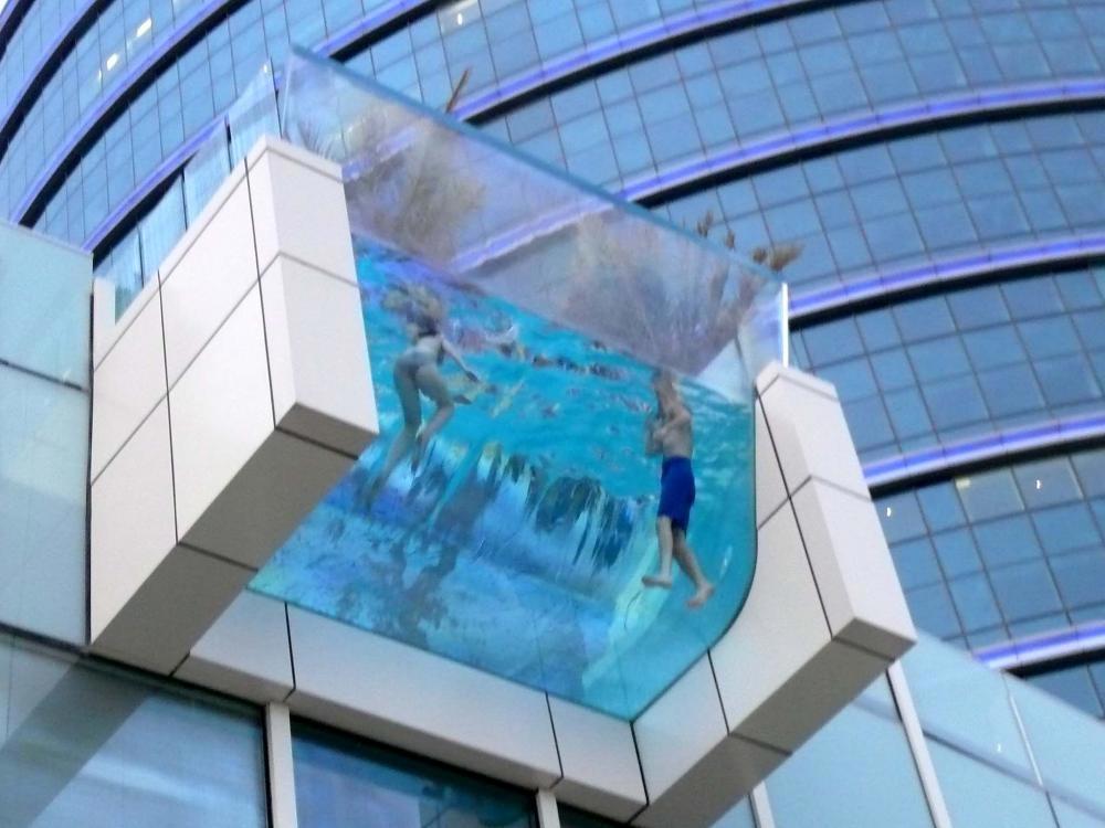 Прозрачный бассейн (где-то там вверху)