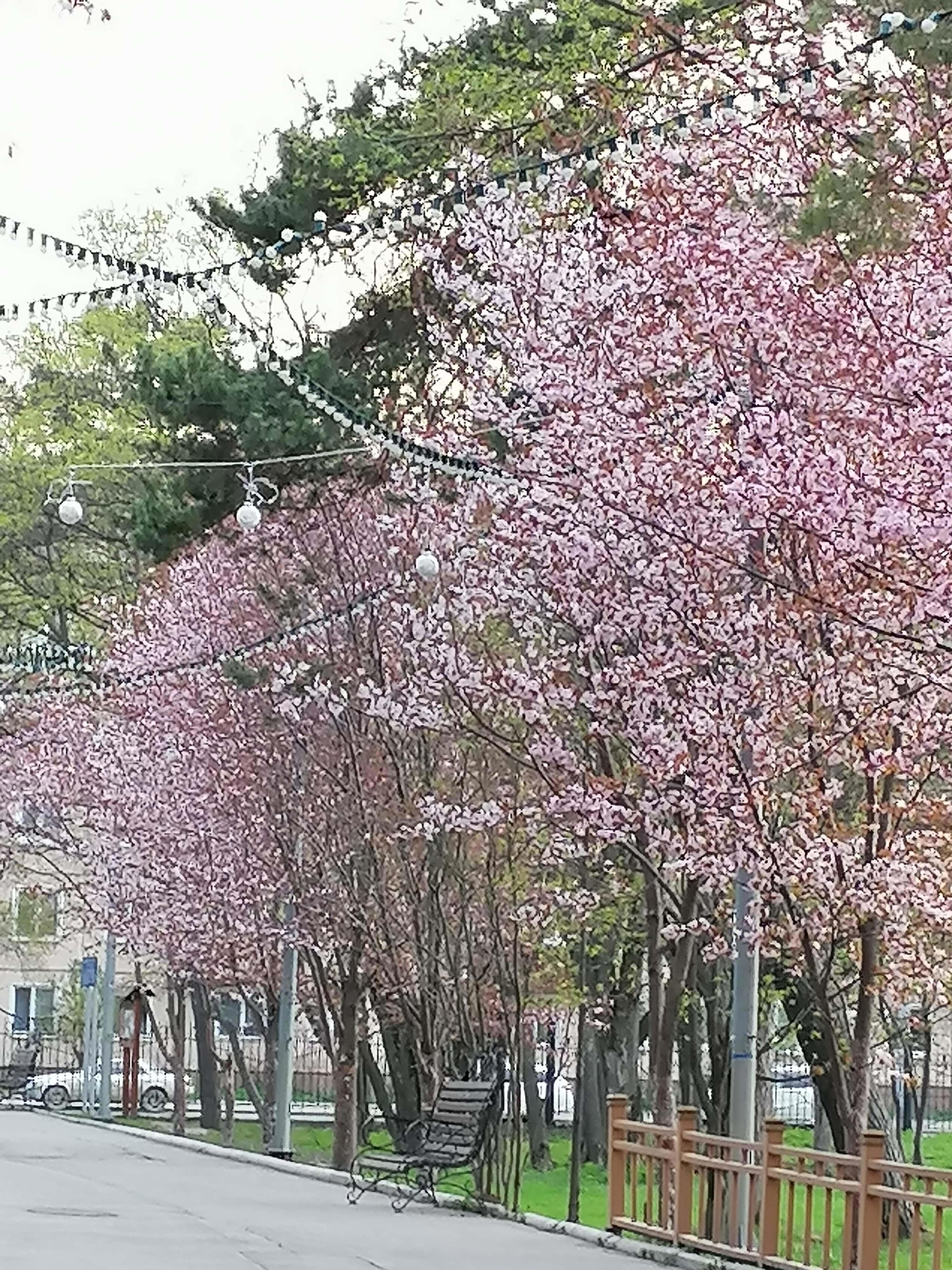 Это аллея сакуры в городском парке. Длинная, с двух сторон всё цветёт