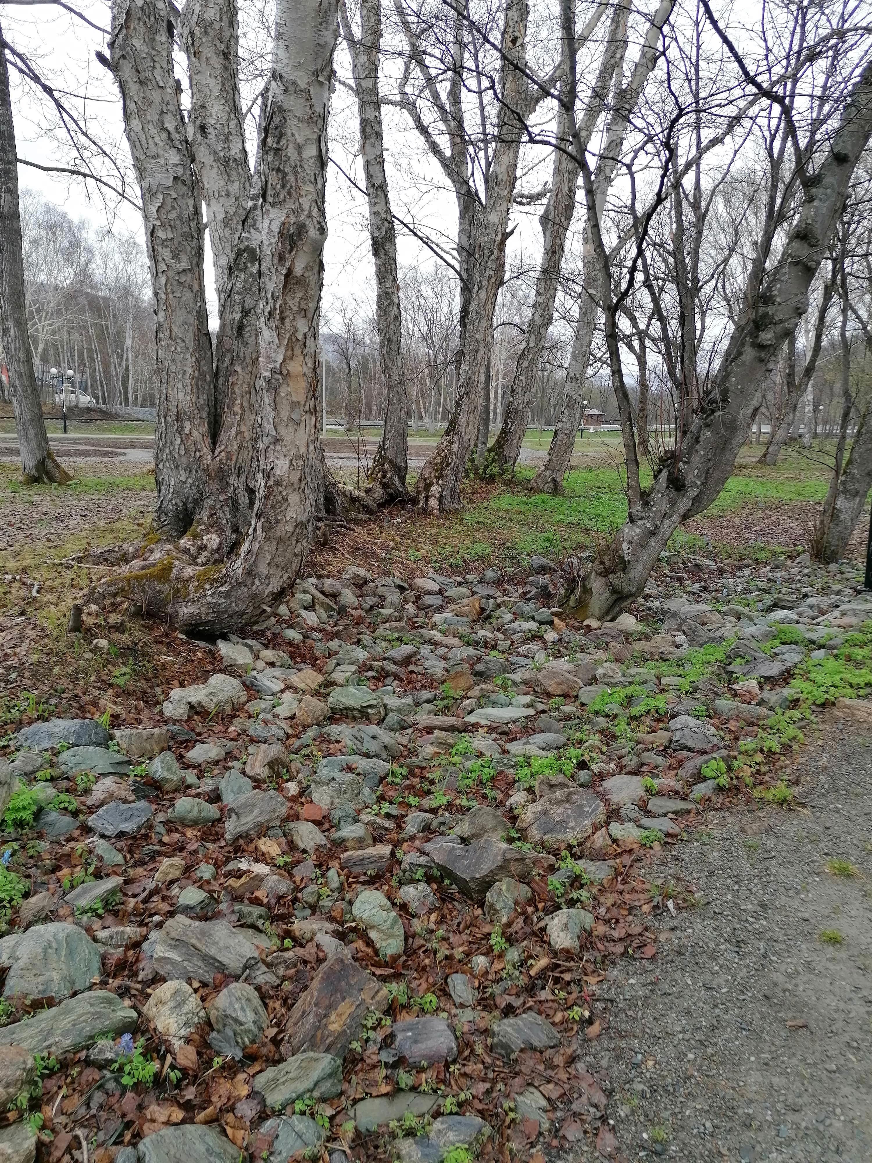 А здесь какое-то волшебное место. Пять или шесть стволов растут из одного корня, в окружении мелких голубых цветов. На фото, правда. как-то не очень видно((
