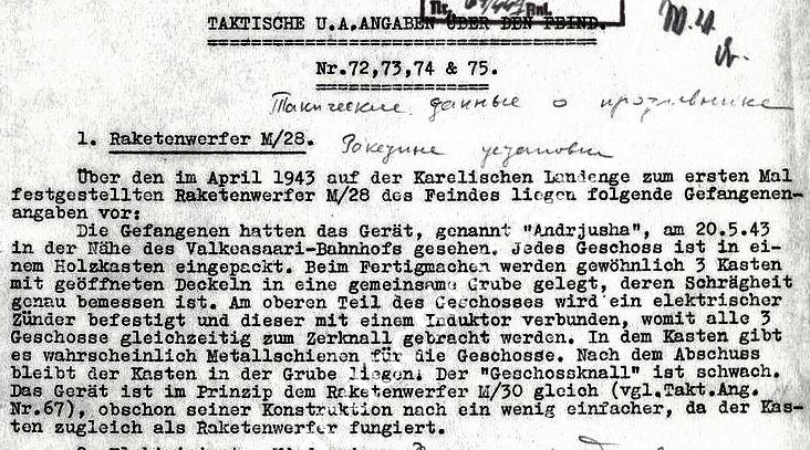 Итак продолжение "катюши" - "Андрюша", применен в мае 43 на Карельском перешейке.