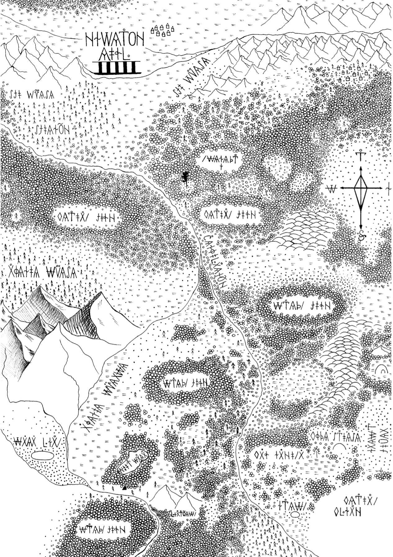 Карты слегка смахивают на компьютерную игру, но это не мешает проникнуться их детальностью и разобраться где кто живет) Графическую карту для первой книги трилогии "Хранители Сальвуса" я про себя назвал "Упрощенная карта с большими погрешностями" или "Пощечина масштабу", потому что масштаб на ней действительно искажен донельзя. Но, несмотря на ее врожденную кривизну, она все же мое дитё, которое я нежно и искренне люблю. Надеюсь, она поможет вам разобраться в локальности происходящих событий, пока вы не стали полностью местным и не заговорили, неожиданно для себя, на их языке каэлести))