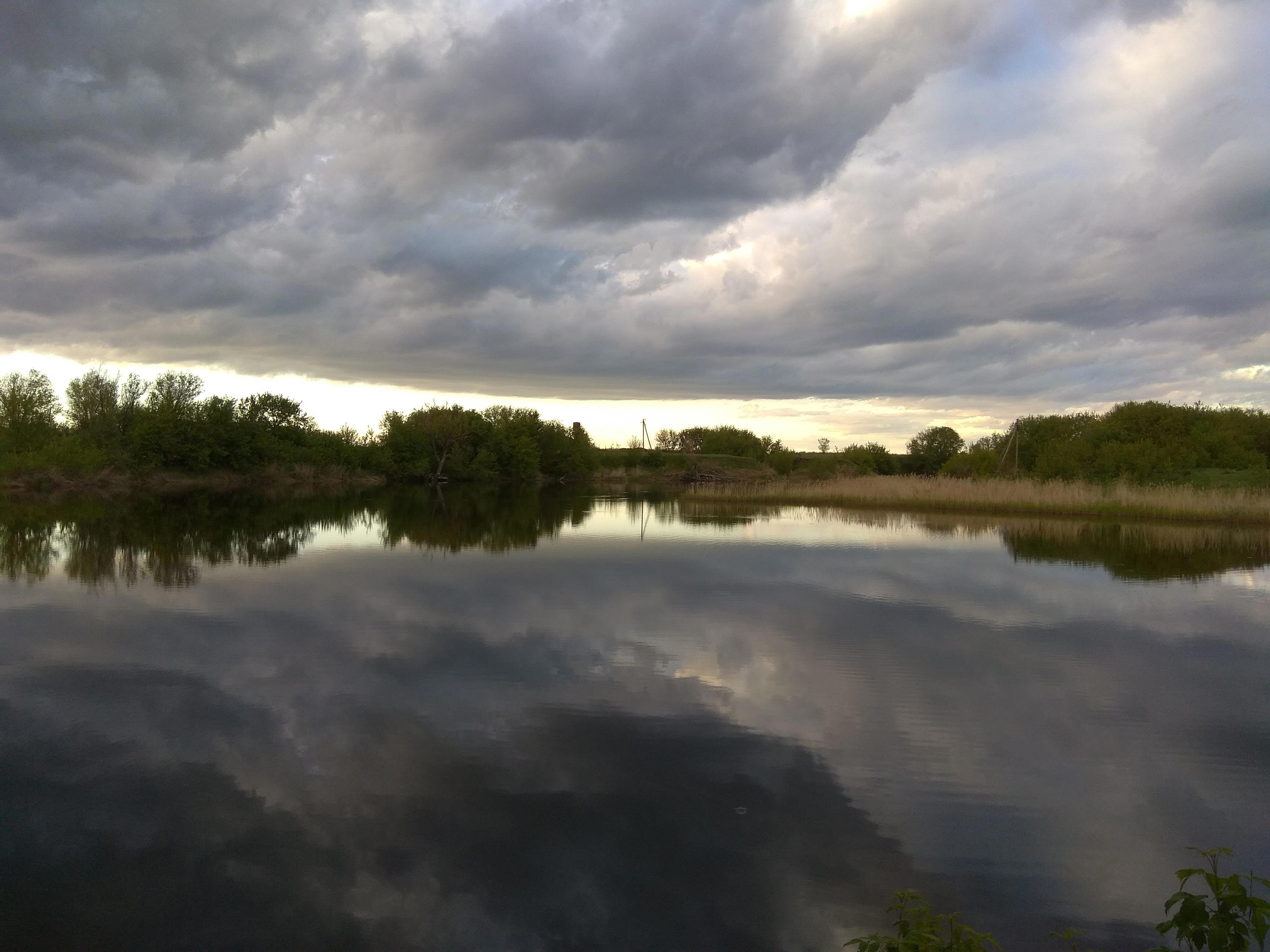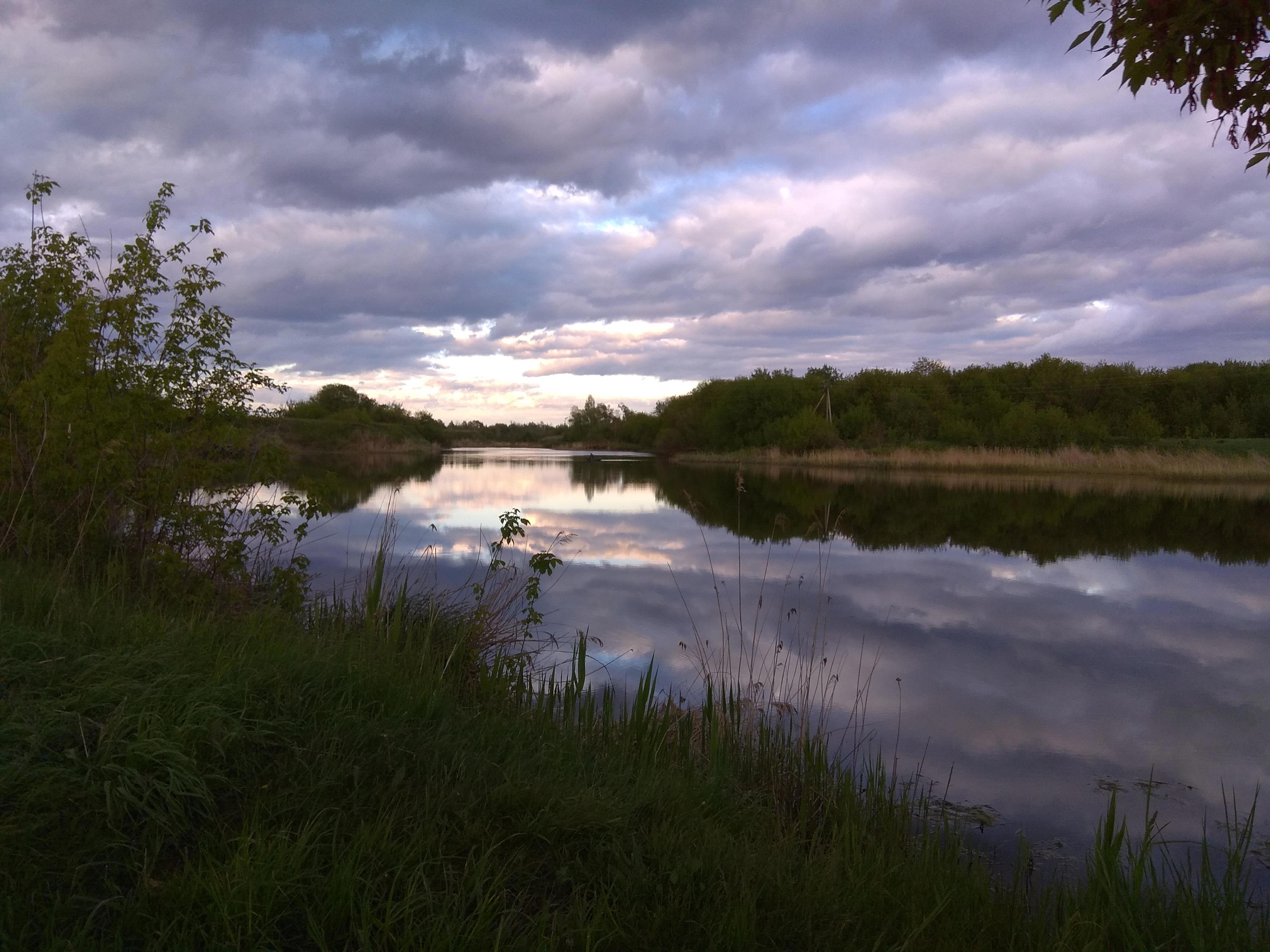 Небо меняло окраску на протяжении всего моего пути. В пруду красиво отражалось