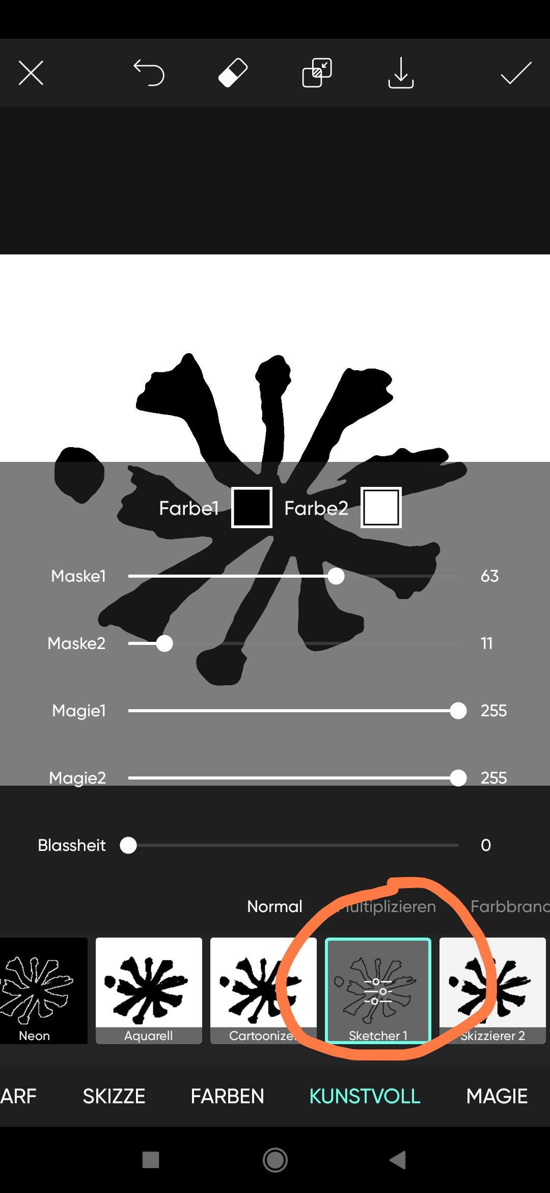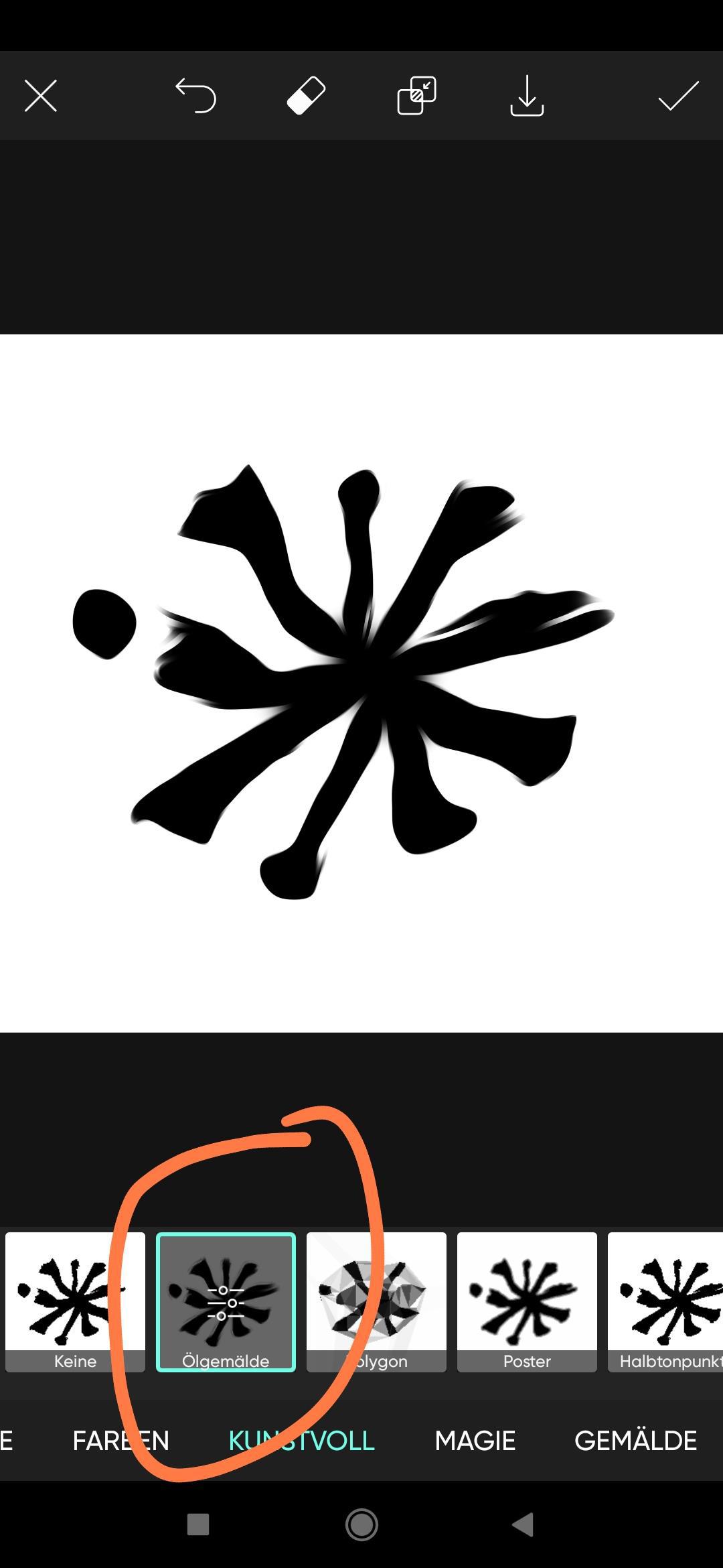 Вот инструмент Oil Painting, он довольно интересно так гладко размывает. Есть и простые инструменты размытия. В зависимости от грубости линии - комбинируем. Этот - мой любимый для растушевки в PicsArt.