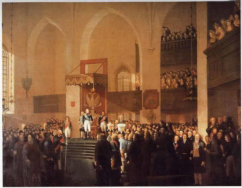 Император Александр I, не дожидаясь конца войны, известил в марте 1808 года все европейские государства о присоединении Финляндии к Российской империи. Жители Финляндии были приведены к присяге. В своём манифесте Александр Павлович обещал финскому народу сохранение «древних установлений», то есть финляндской конституции, согласно которой Финляндия имела свой сейм. В феврале 1809 года был созван сейм в Борго. 16 марта русский император Александр I лично открыл сейм. Собрание должно было решить четыре вопроса: о войске, налогах, монете и об учреждении правительствующего совета. Решения сейма легли в основание управления краем. В военном вопросе была сохранена поселенная система; в качестве денежной системы приняли русский рубль (в 1860 году заменен финской маркой); все налоги шли в пользу области; фактически было создано национальное государство для финнов