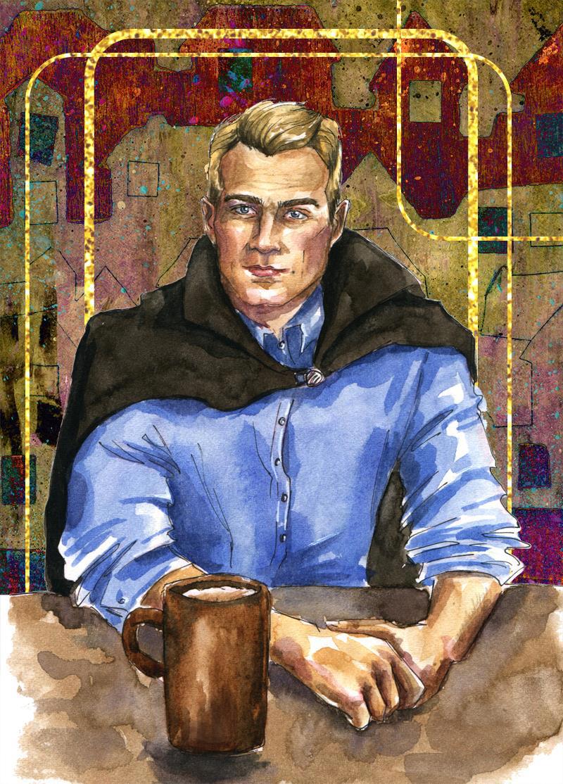 Это Робин, персонаж второстепенный, но для психического здоровья Екатерины - вполне себе первостепенный. По крайней мере, он пытается её поддерживать) Он одного возраста с Джеем - им около сорока, но Джей консервировался в зеркалах, пока Робин служил во благо города. Родинка случайная, но я решила оставить.