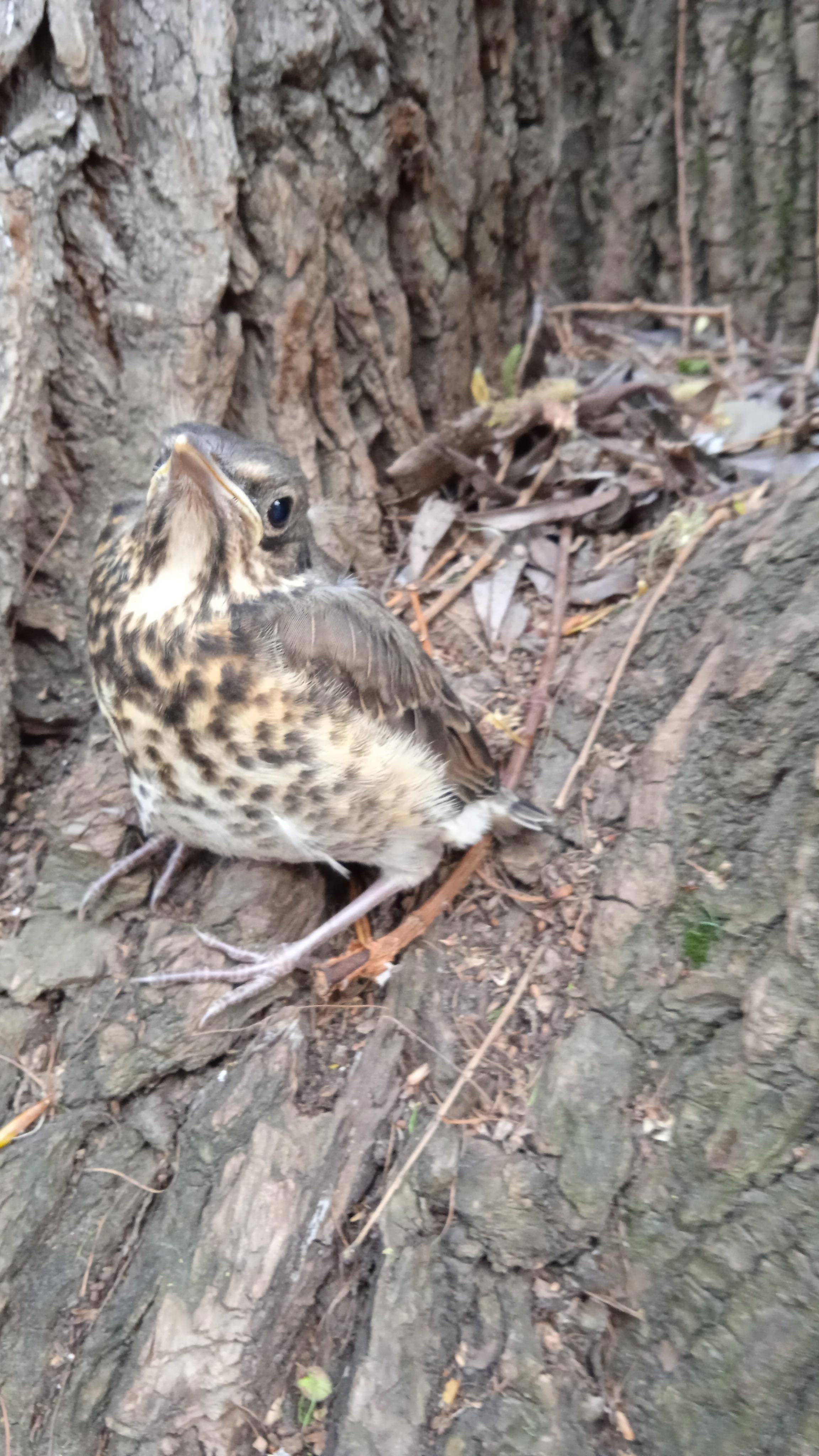 Автор: Иванов АлексейДрозд-рябинник. Птенец. Явно первый раз выбрался из гнезда. Летать полноценно ещё не может. Старается просто бегать , а потом короткими перепархиваниями двигается. Умиляшечка прям такой... Сидел в развилке невысоко совсем. Видать замаскировался так....