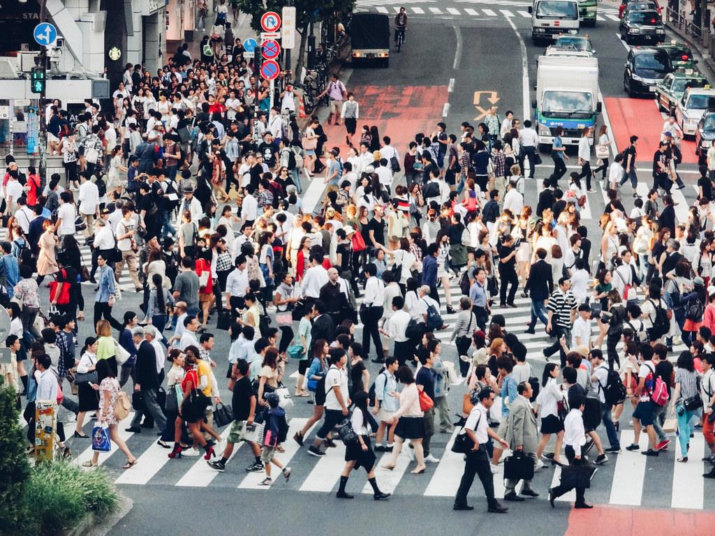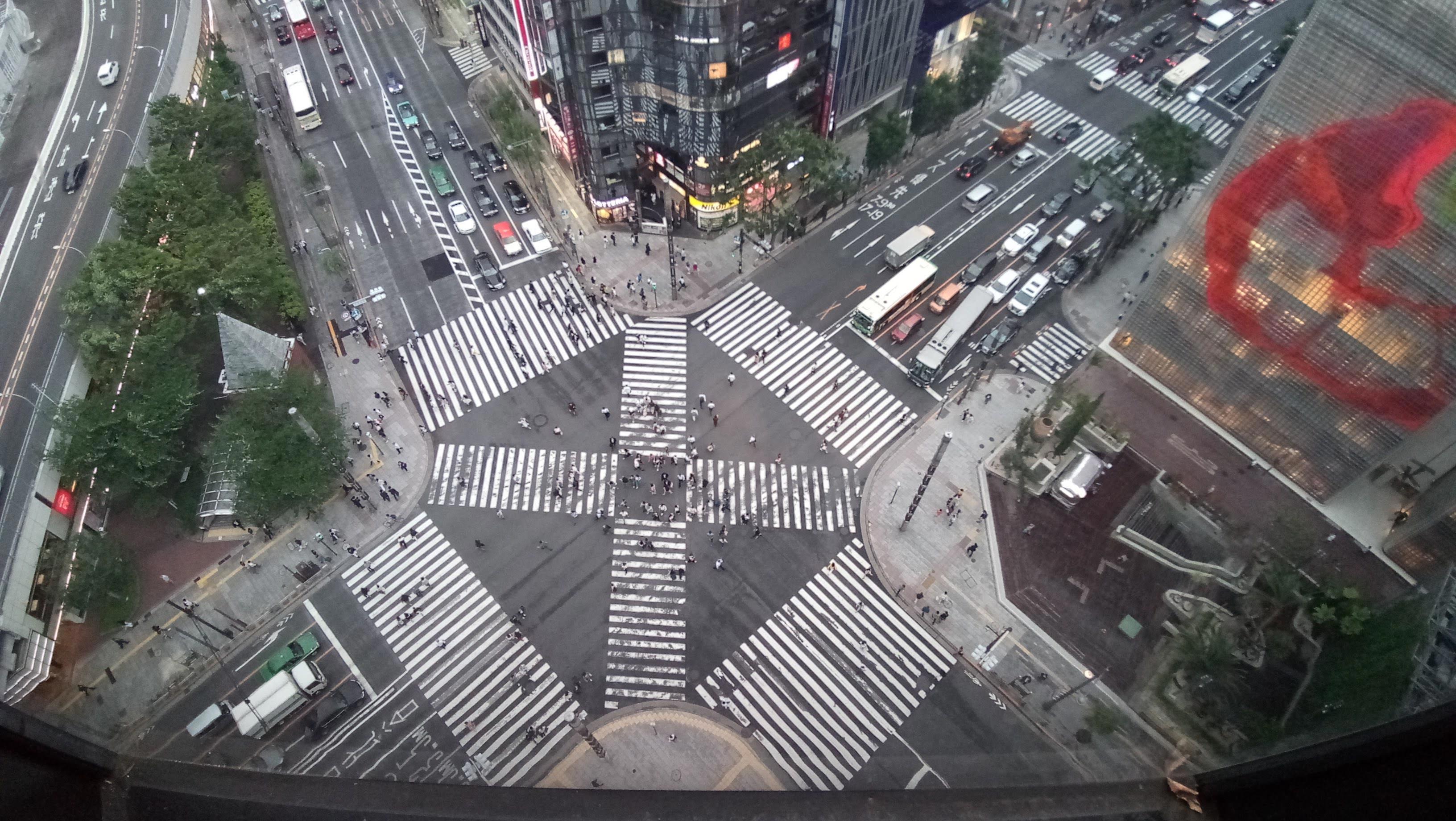 Сибуйский диагональный пешеходный перекресток. Токио.