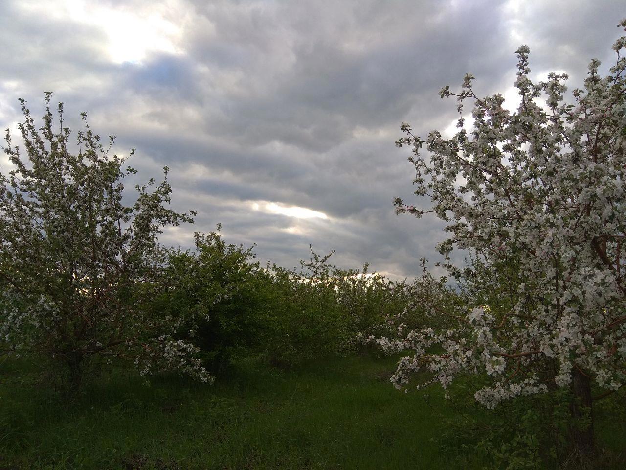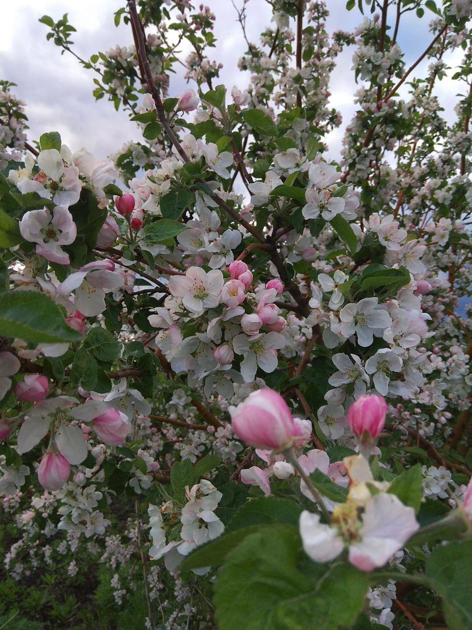 На простую камеру смартфона особо красиво не снимешь цветущие деревья. Отдаленный пейзаж попросту выходит каким-то плоским. Но все равно рискну поделиться этой красотой)))