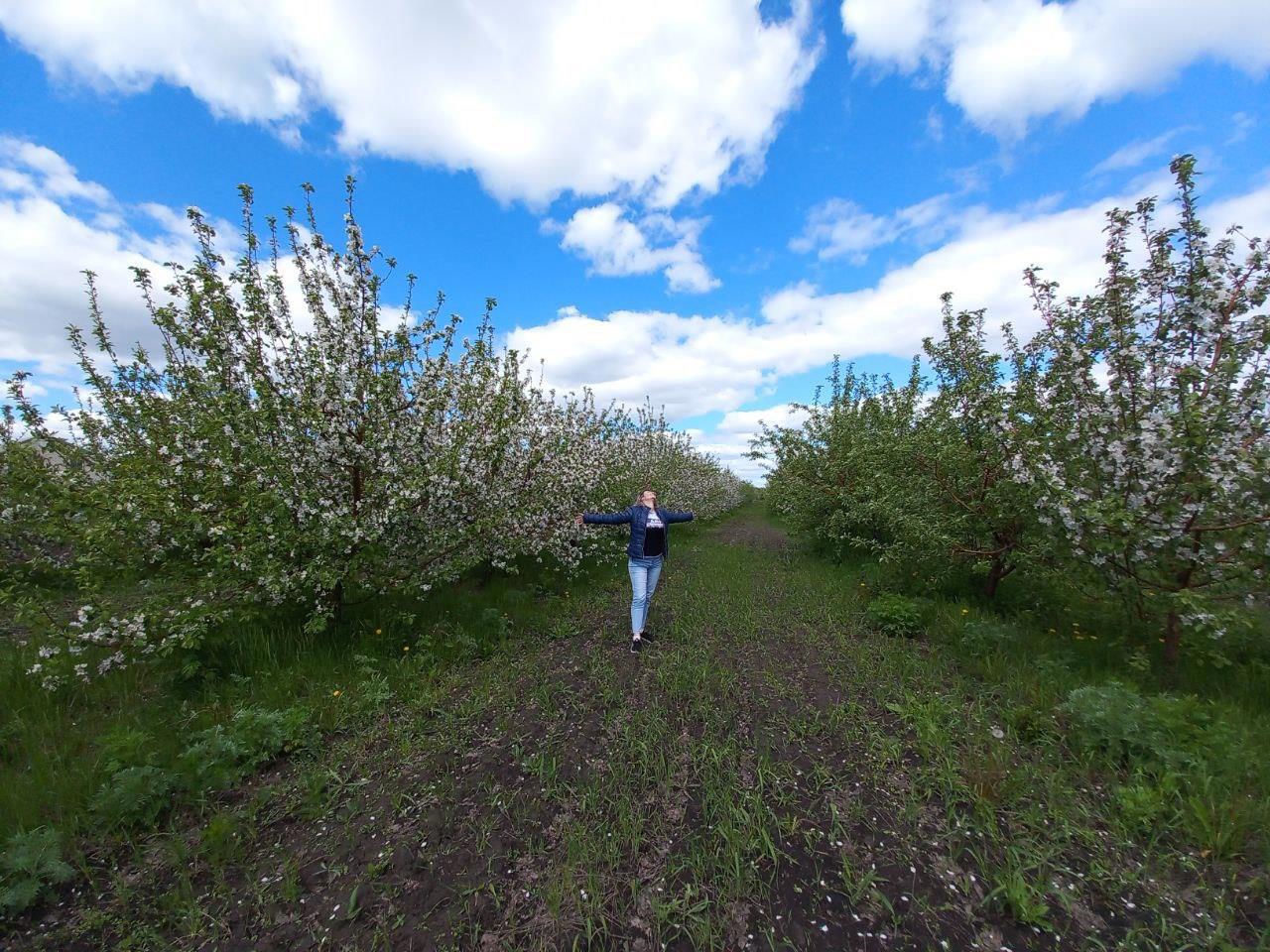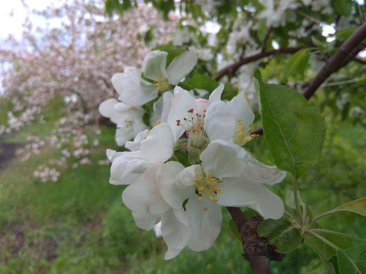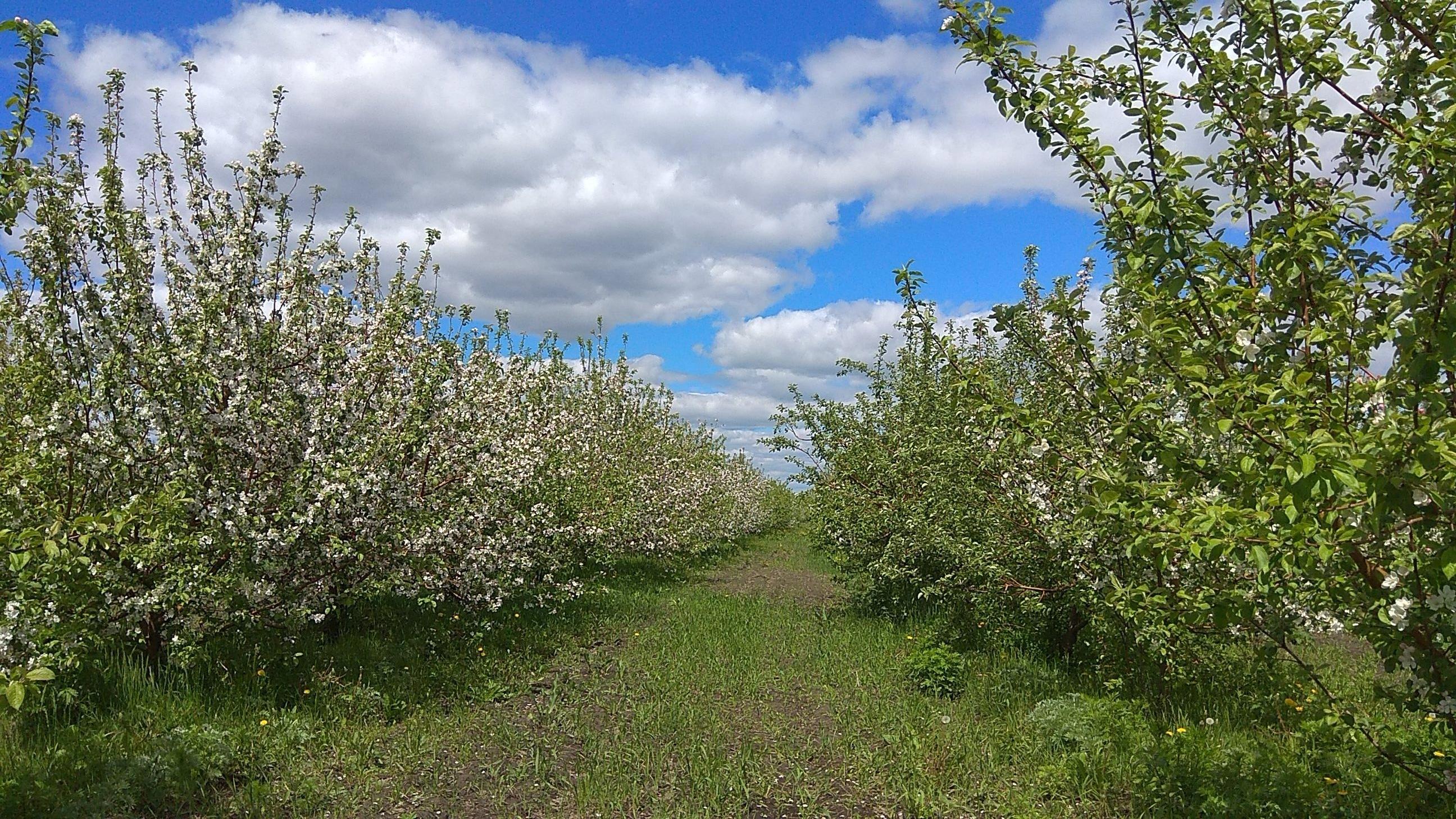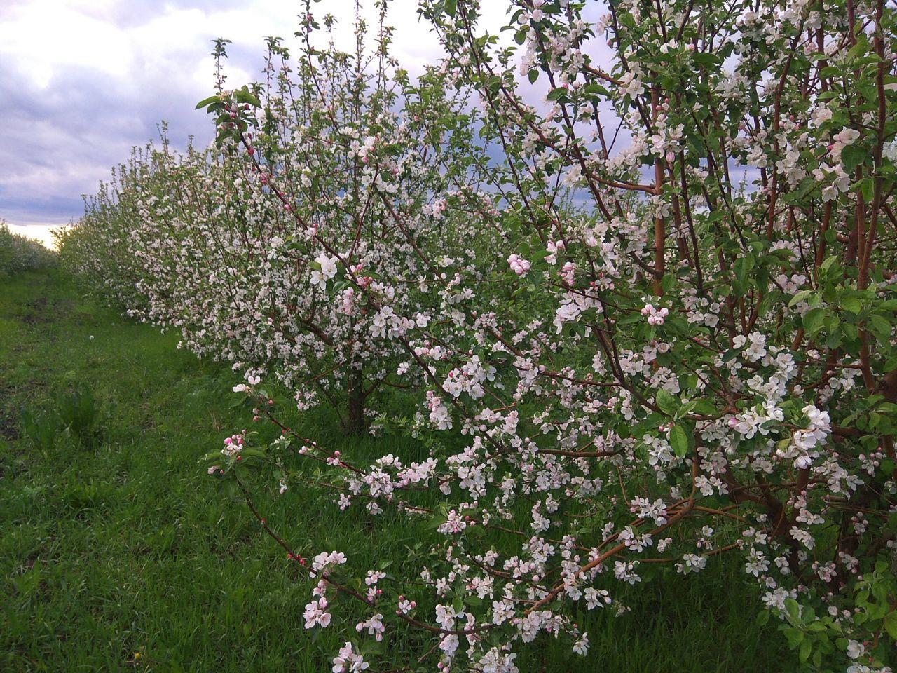 Чтобы вы понимали, сады занимают около трех тысяч гектаров (около, потому что территория закладки новых садов постоянно растет. Вот прямо сейчас высаживают новые молодые саженцы, а через три года они превратятся в большие деревья, потому что яблони у нас интенсивного типа). Да, это колоссальная территория! А теперь, представьте, как все это смотрится, когда массово расцветает! Настоящий отдых для души -- погулять в таком саду.