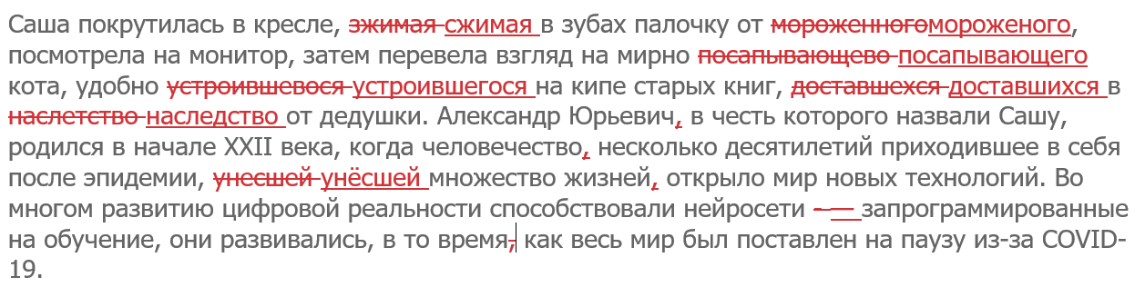 Как будут исправляться ошибки? Формат Word, режим рецензирования — вы сможете увидеть исправления и либо согласиться с ними, либо оспорить. Выглядеть это будет так: