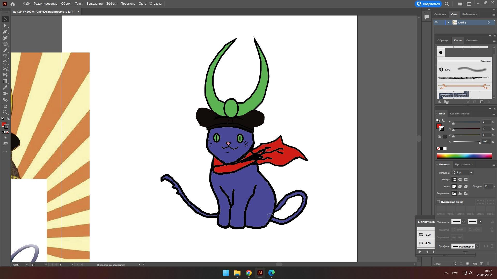 Теперь я вдобавок ко всему решила осваивать Adobe Illustrator. Посмотрела первый урок и - вуаля - странный кот в шапо готов