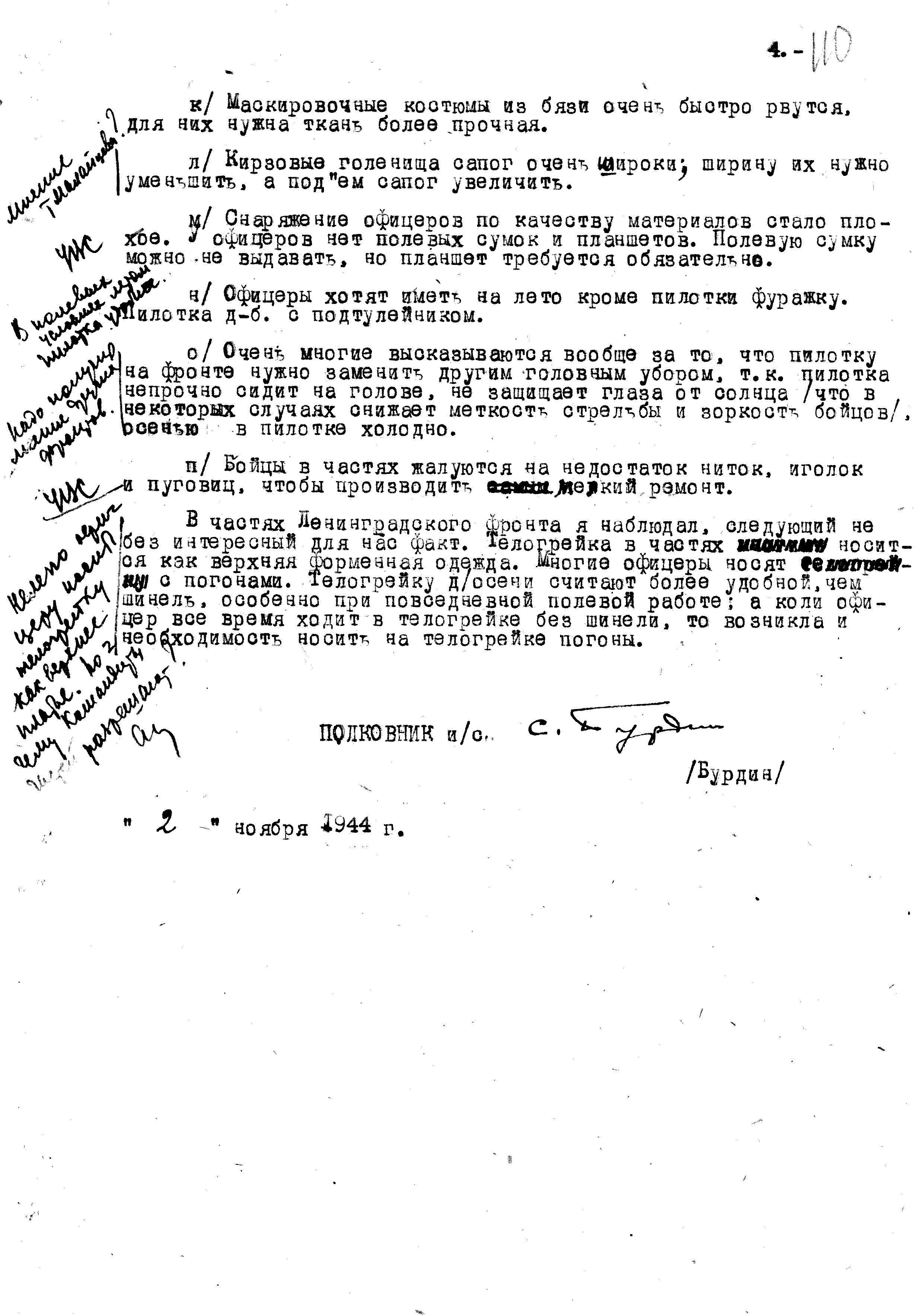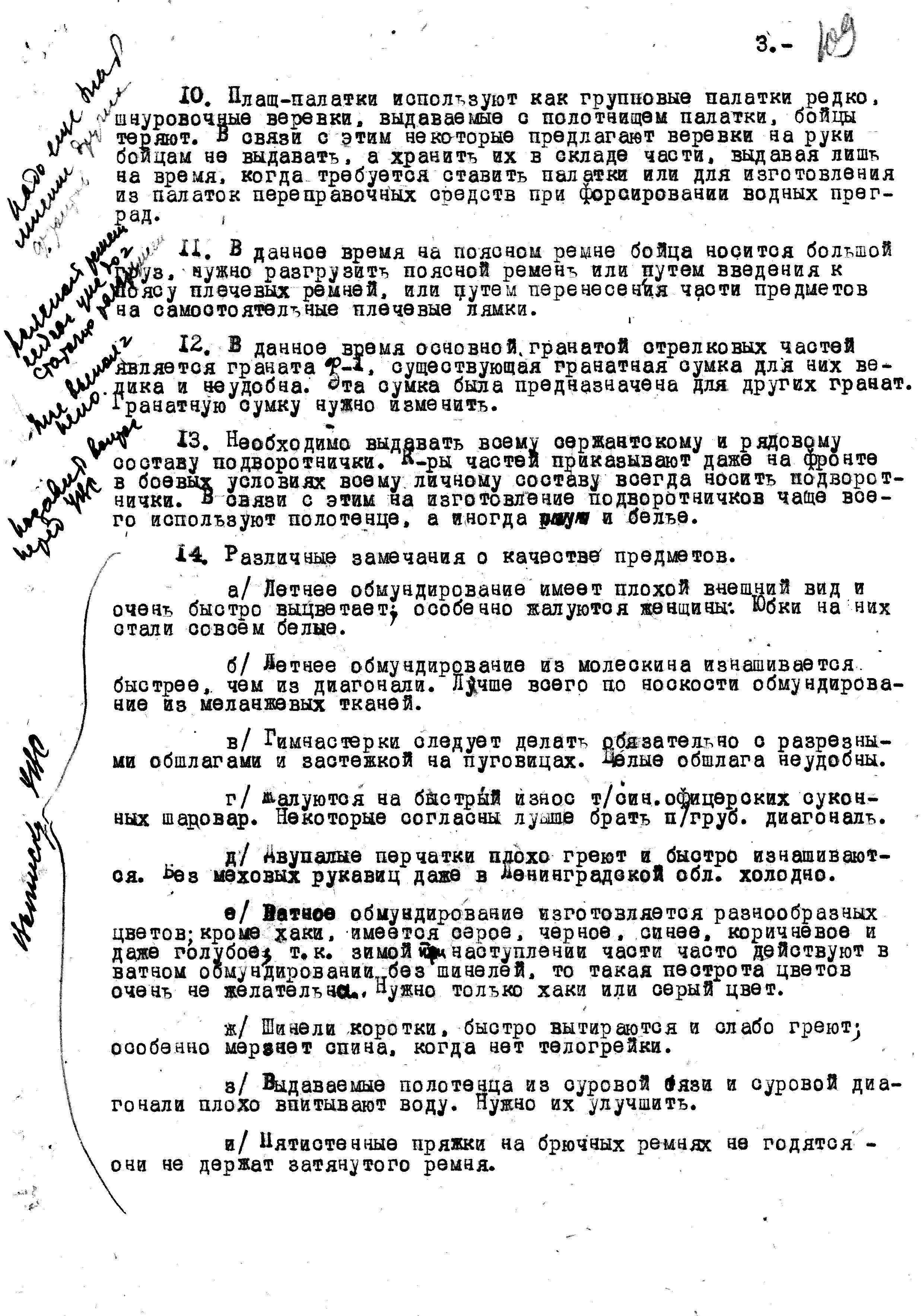 Пожелания бойцов Ленинградского фронта по улучшению формы