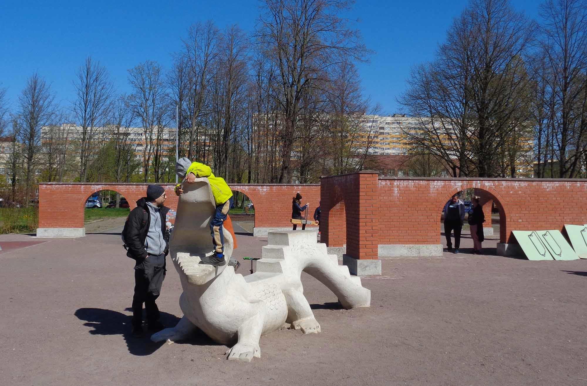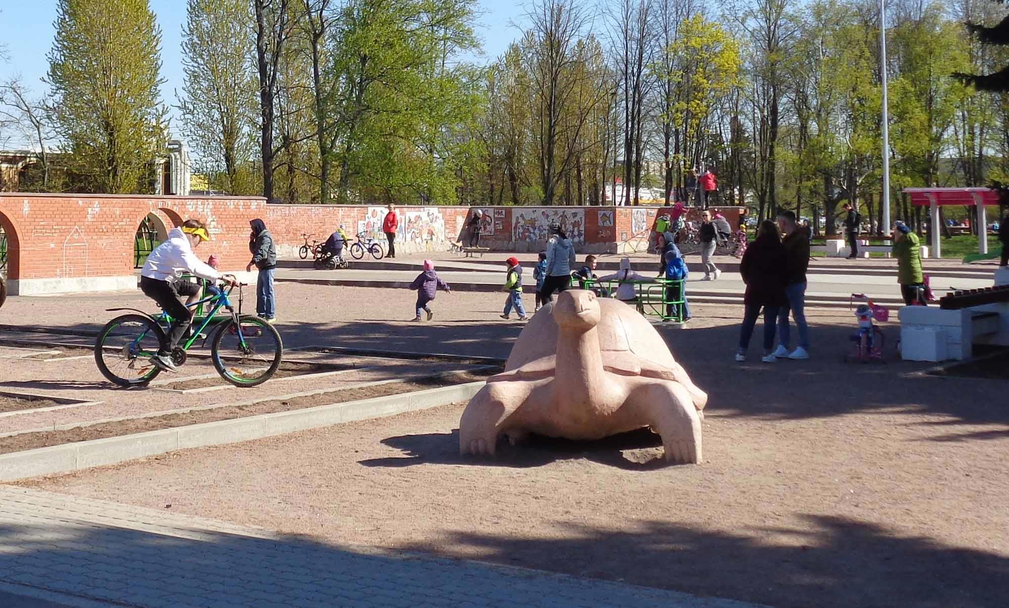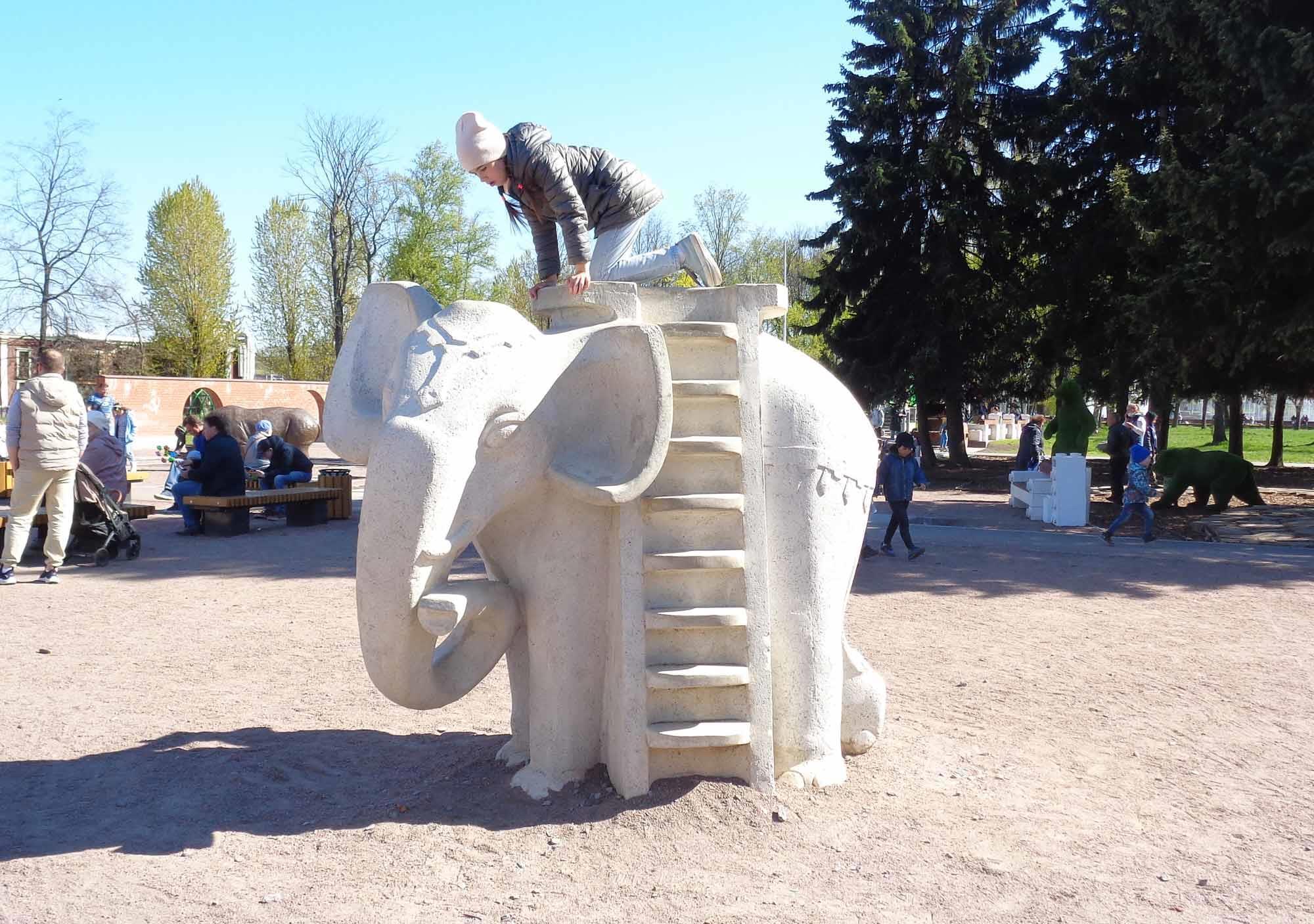 Сейчас центральную часть занимает парк аттракционов, но сохранился и советский детский городок, в котором до сих пор стоят слон, крокодил и черепаха скульптора Анатолия Киселева.
