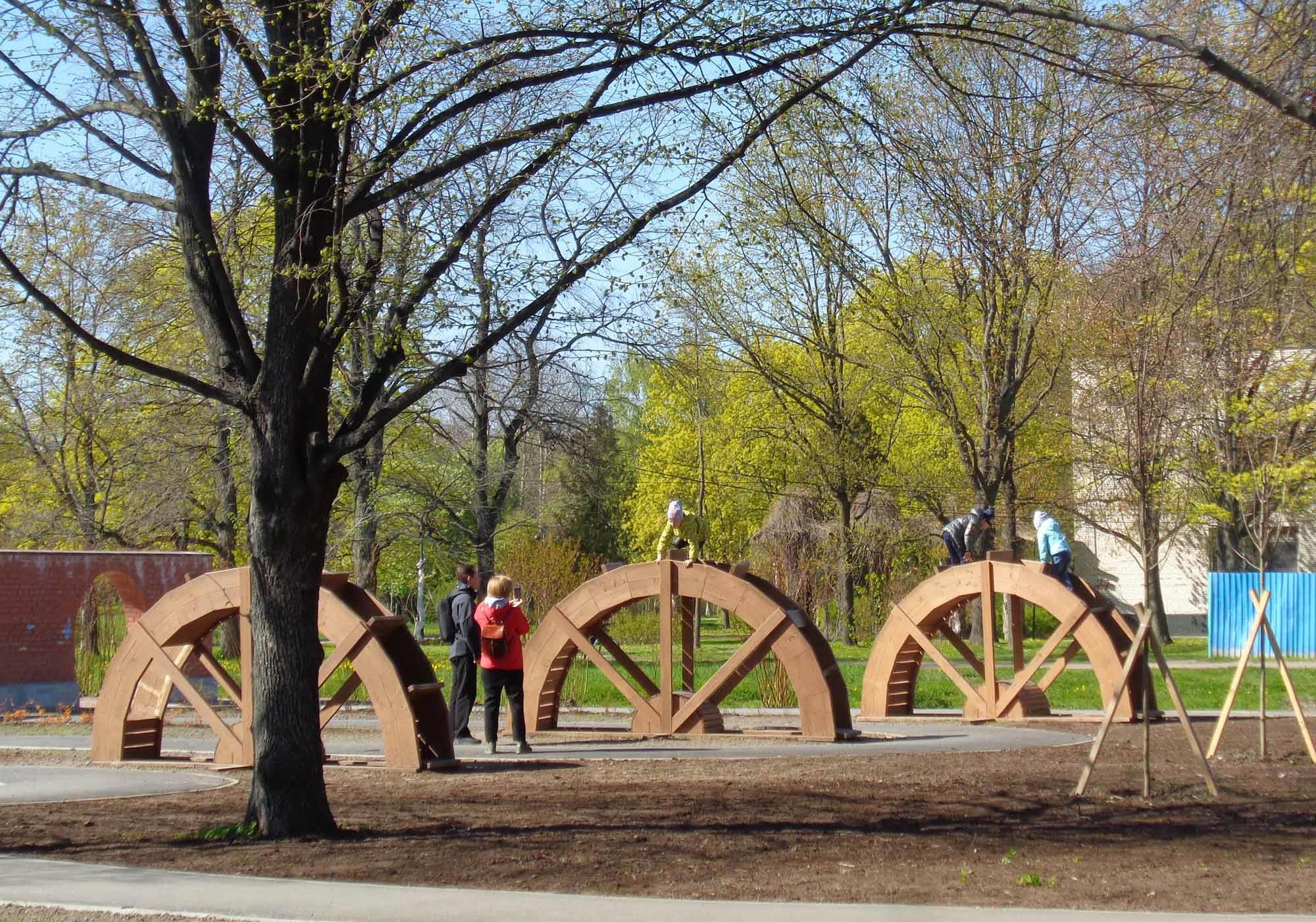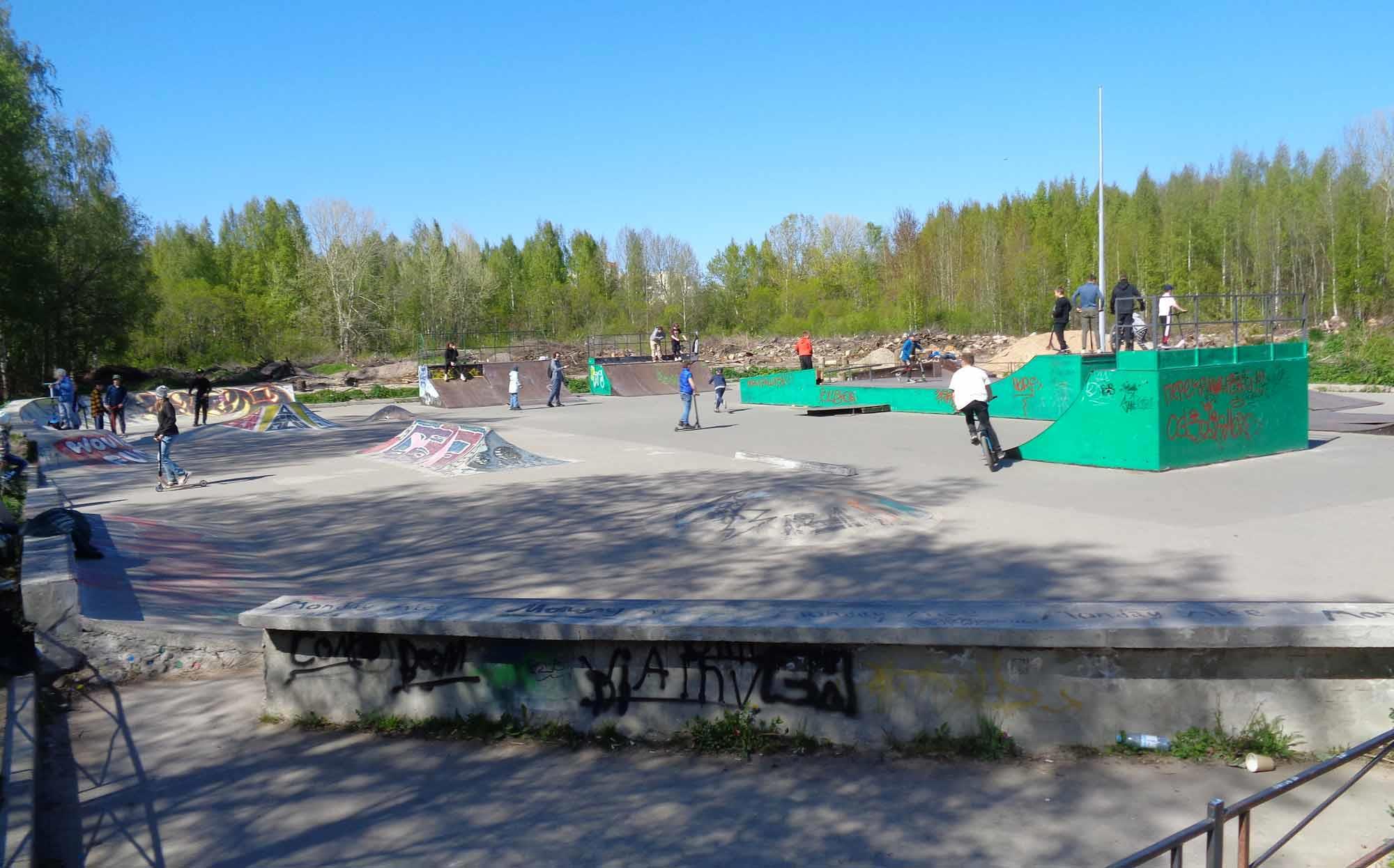 В самом конце парка расчистили площадку под велодром. Судя по вырубке, будут расчищать и дальше, чтобы использовать бросовое пространство. Подростки с увлечением демонстрируют тут свои трюки на велосипедах, роликовых коньках и досках. Сейчас молодёжь стала гораздо шустрее и спортивнее, вопреки ворчанию стариков. В моё детство так массово спортом не увлекались. Может, просто негде было?