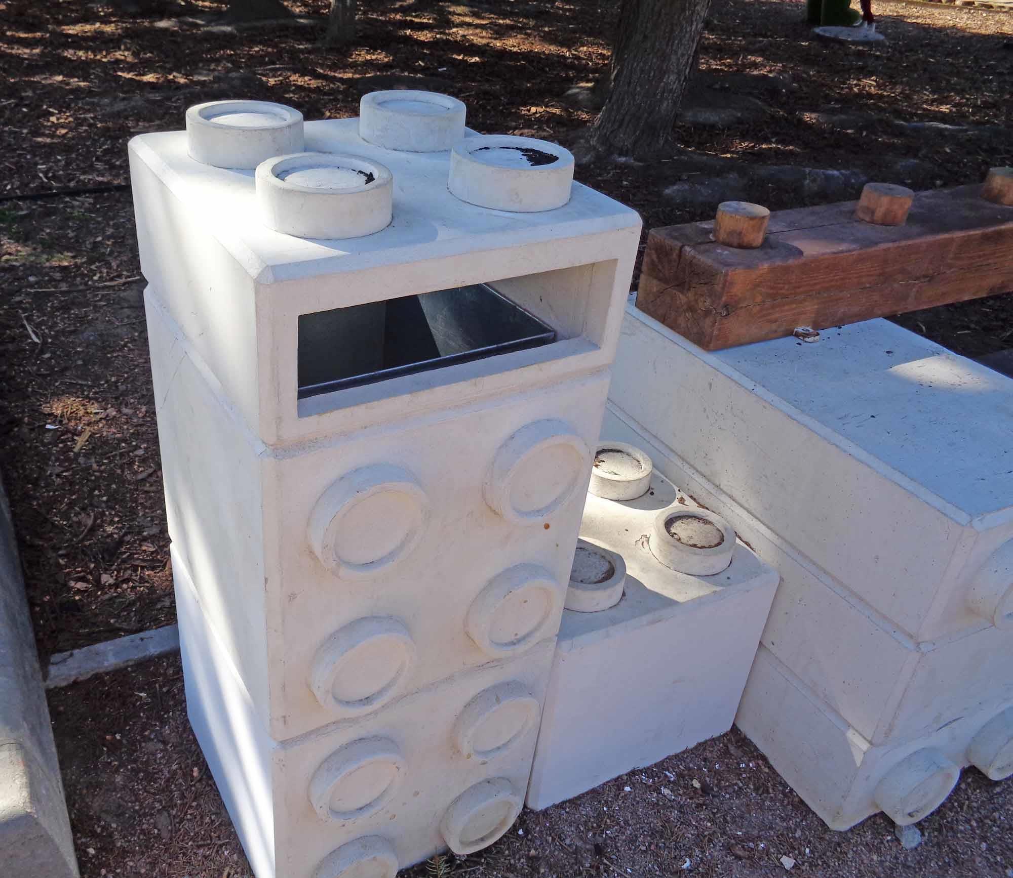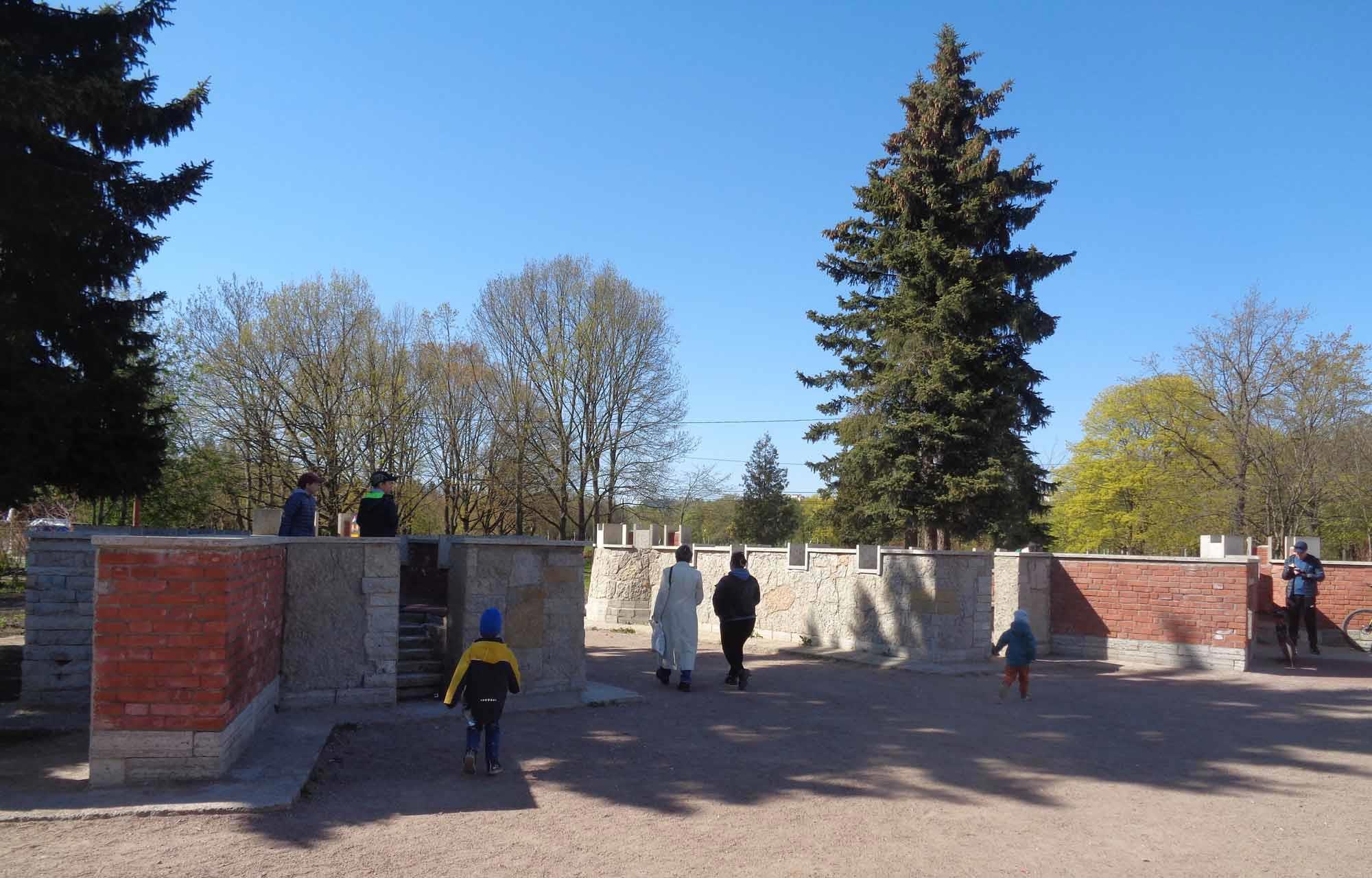 Сохранилась и детская крепость. Раньше внутри её стенок было пустое пространство, посыпанное гравием. Сейчас внутренность подняли, чтобы дети могли свободно выглядывать из бойниц, положили резиновое покрытие, снабдили лестницами: