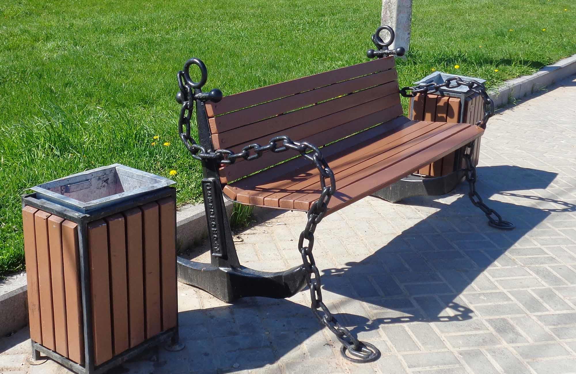 Такие симпатичные скамейки можно найти в начале парка. Это уже новшество, но оно пришлось кстати. Сейчас в парке много где можно остановиться, посидеть, отдохнуть. И эти стилизованные под морскую тематику лавочки смотрятся органично: