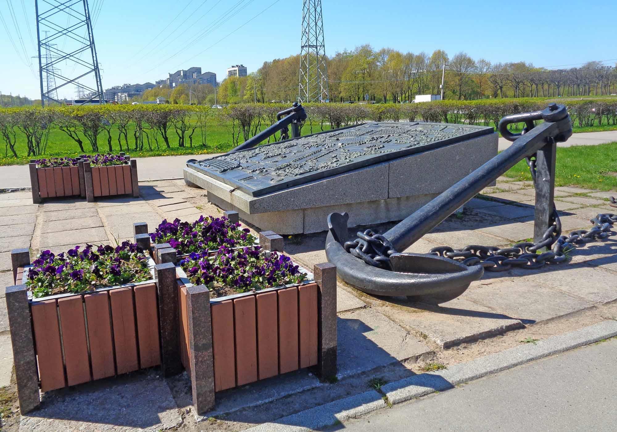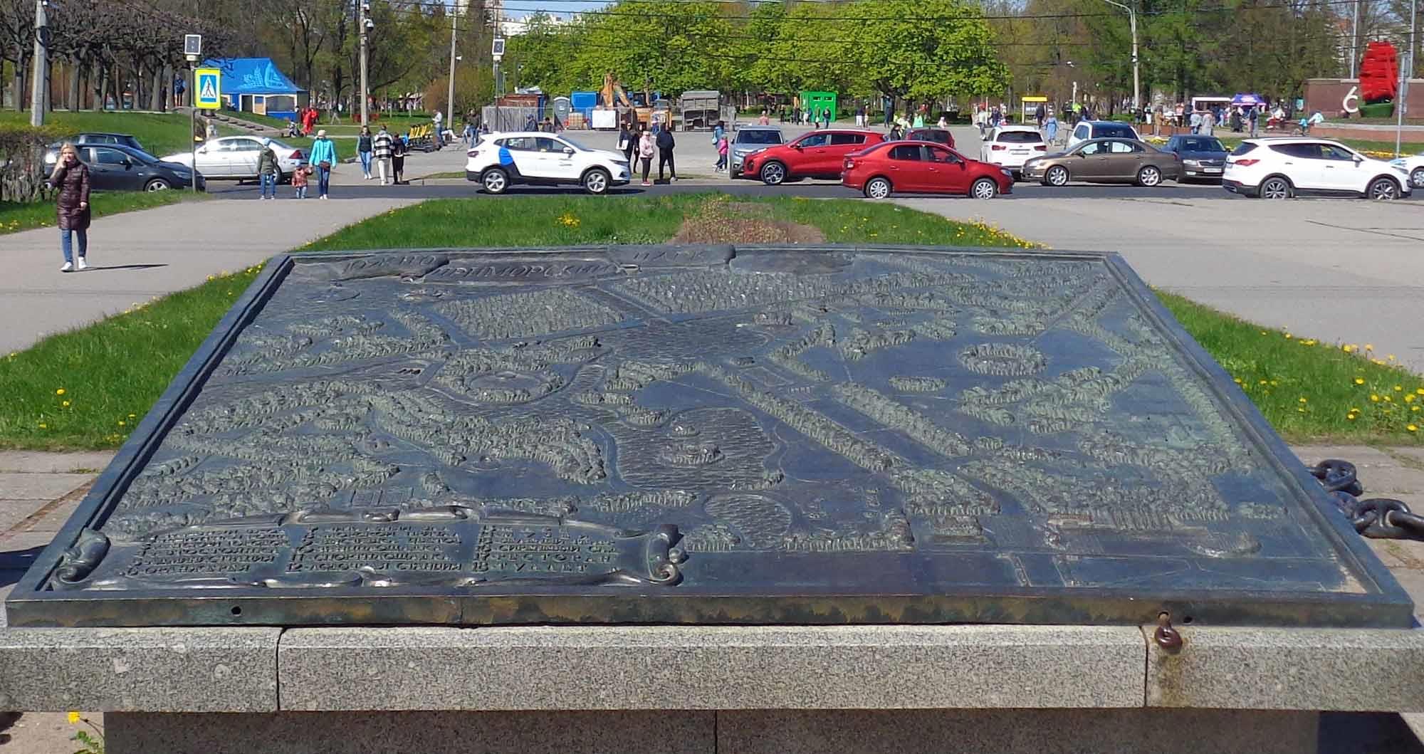 Сохранилась бронзовая плита с картой. Её сложно сфотографировать, лежит она под таким наклоном, что её и разглядывать-то можно лишь по частям. Или нужно зависнуть над ней на воздушном шаре. Её окружают огромные якоря: