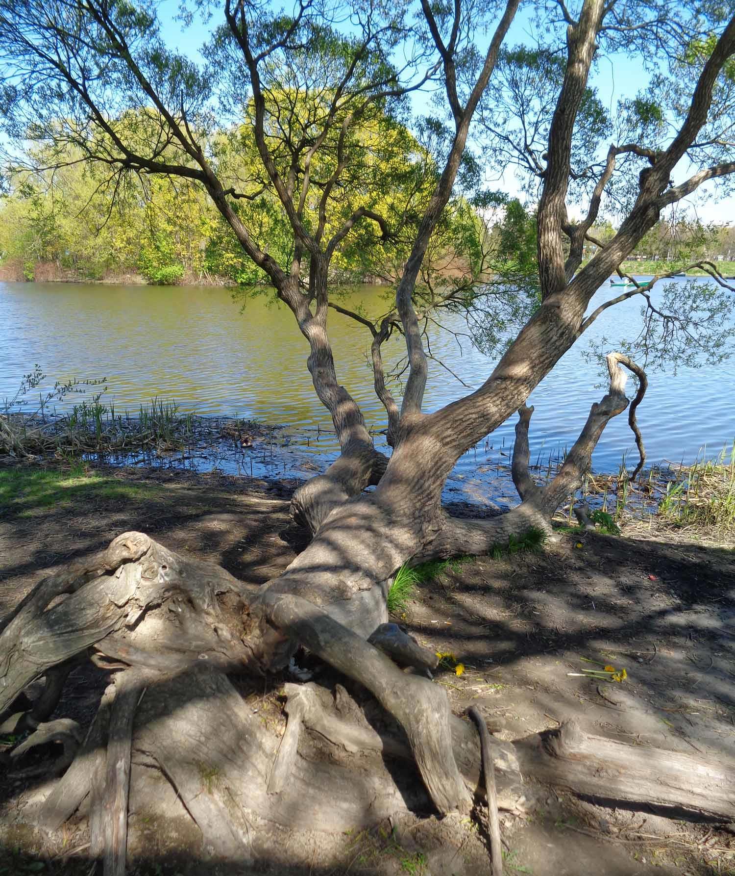 Деревья, которые в моё детство были скромными кустиками, разрослись до огромных размеров. Особенно постарались ивы. Парк вообще выглядит как лес, деревьев стало много, под ними посадили новые кустарники: