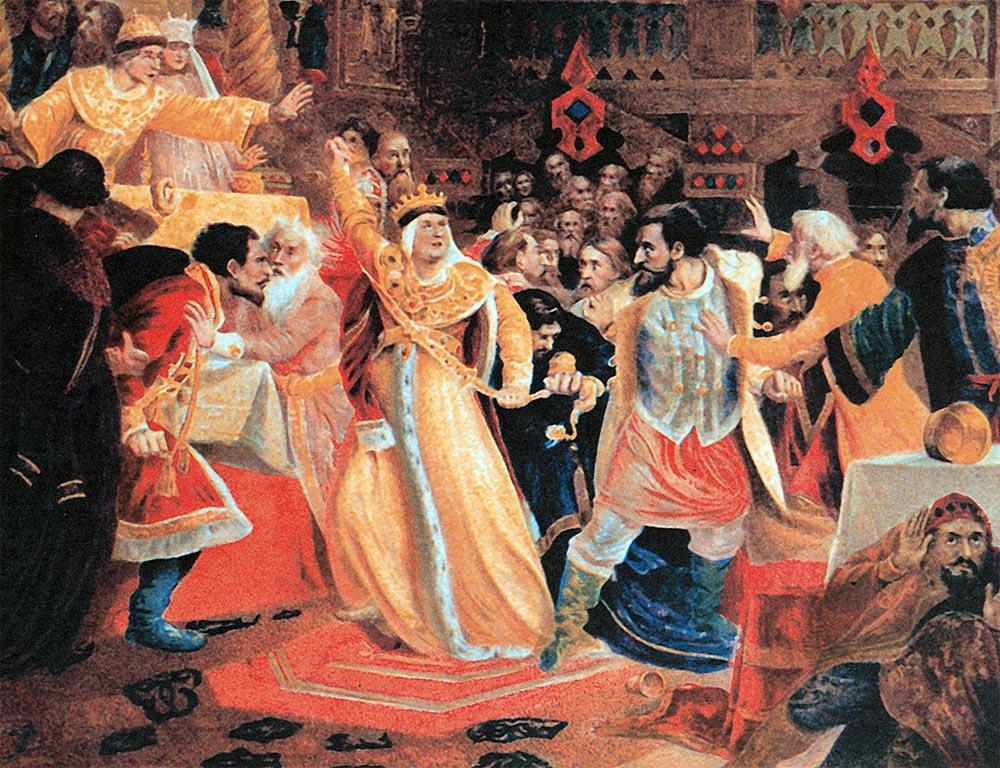 В 1366 году в Коломне состоялась свадьба между Дмитрием Донским и суздальской княжной Евдокией. Счастливый тесть подарил зятю богатый золотой пояс, отделанный драгоценными камнями. Однако пощеголять в этом поясе будущему герою Куликовской битвы так и не довелось, пояс был украден и заменен на менее броский. Пропажа обнаружилась спустя 67 лет и вновь на свадьбе, на сей раз внука Донского Василия Второго с Марией Серпуховской. Некий боярин Захарий Кошкин узнал этот пояс на прибывшем на свадьбу другом внуке Донского, звенигородце Василии Косом.Мать жениха Софья Витовтовна публично сорвала пояс с Косого, тот в гневе удалился прочь и на просторах русских земель возобновилась самая продолжительная по времени Гражданская (хорошо, пусть будет Феодальная) война, стоившая зрения обоим Василиям …. на https://author.today/work/149923/ опубликована тридцать вторая глава романа «Его высочество Буриданов осел», шестой книги исторической серии «Kyrie Eleison».
